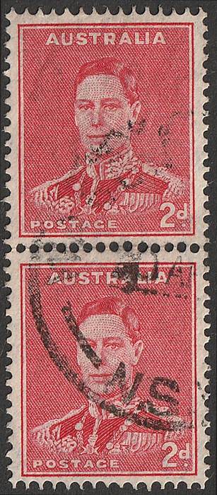 coil perf pr with uniformly large holes. VFU. SG 184a(var) cat £450. ACSC 188bh cat $400. Scarce genuine. (P) (Image1)
