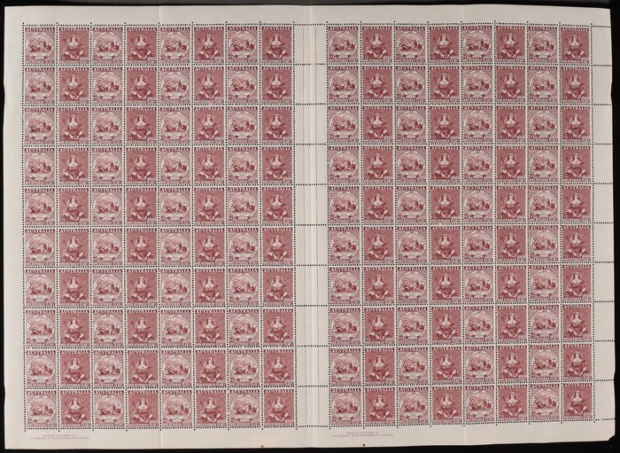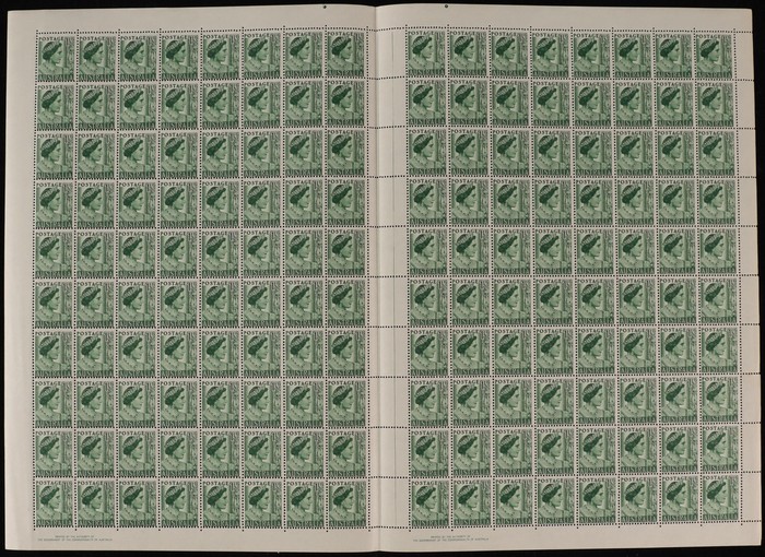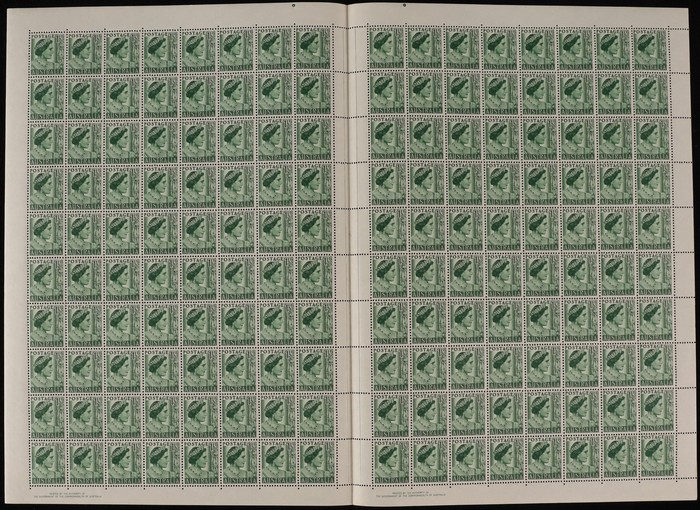 green sheet of 160 with perf-pips at top & both Authority imprint. Couple minor internal perf separation. VF MNH. ACSC 248 bb zc zf cat $375. (160) (Image1)
