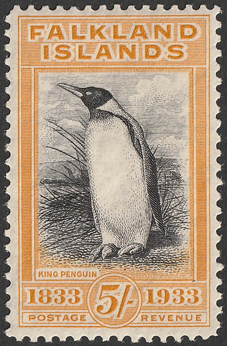 black & yellow King Penguin. VF MLH. Scott 74 cat US$950. SG 136 cat £1000. (P) (Image1)