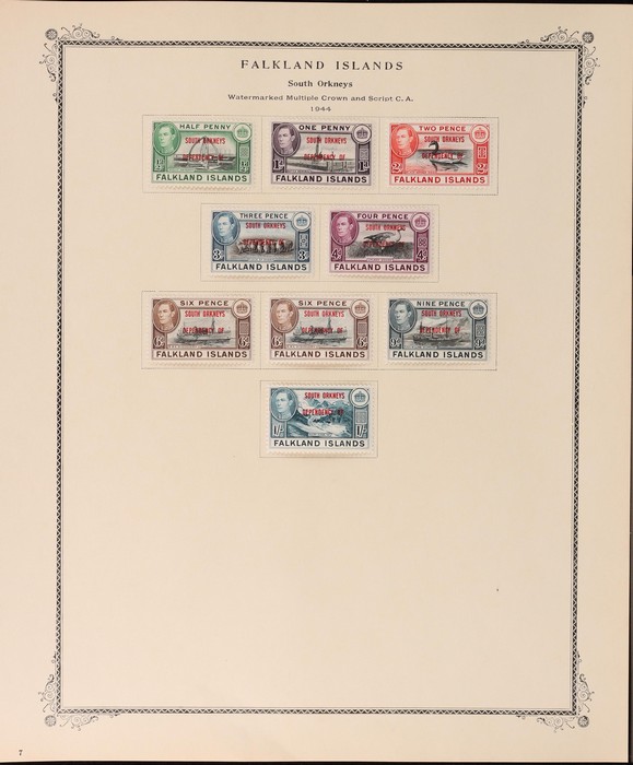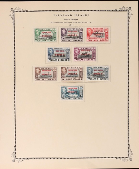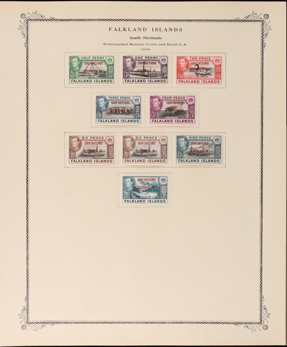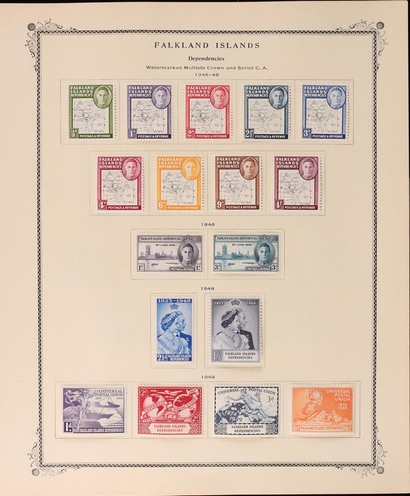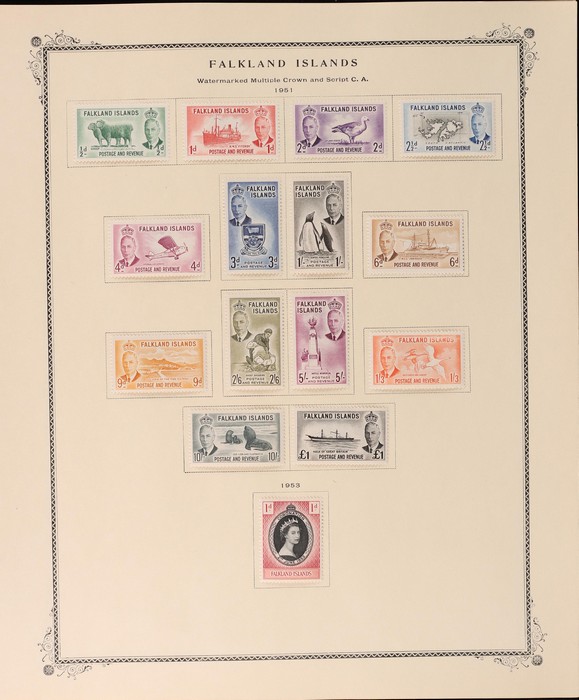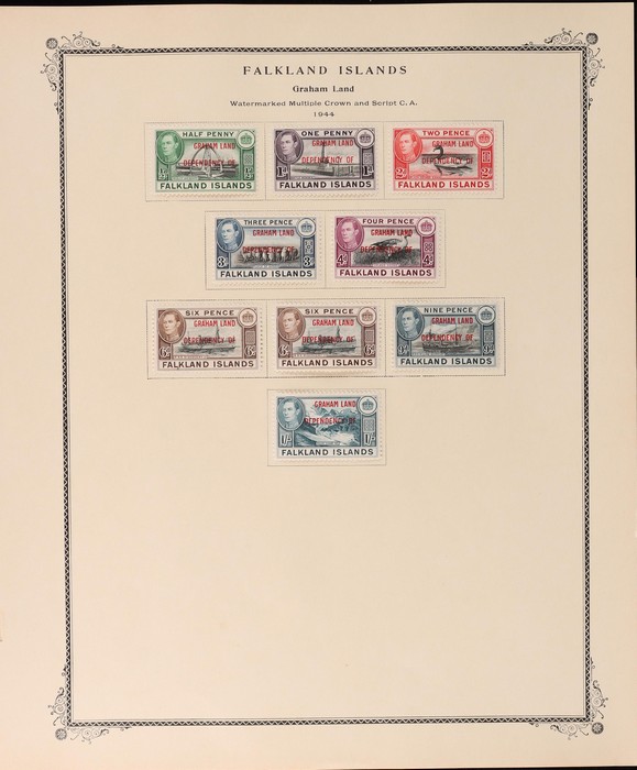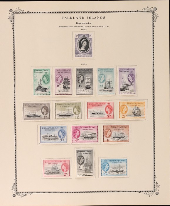 collection inc 1952 KGVI Pictorial set to £1., plus Falkland Dependencies 1948 KGVI MAP set to 1/-. 1944-45 KGVI Pic opt set to 1/- for Graham Land, South Shetlands, South Georgia & South Orkneys. VF fresh MNH. SG cat £280. (54). (Image1) (Image2)