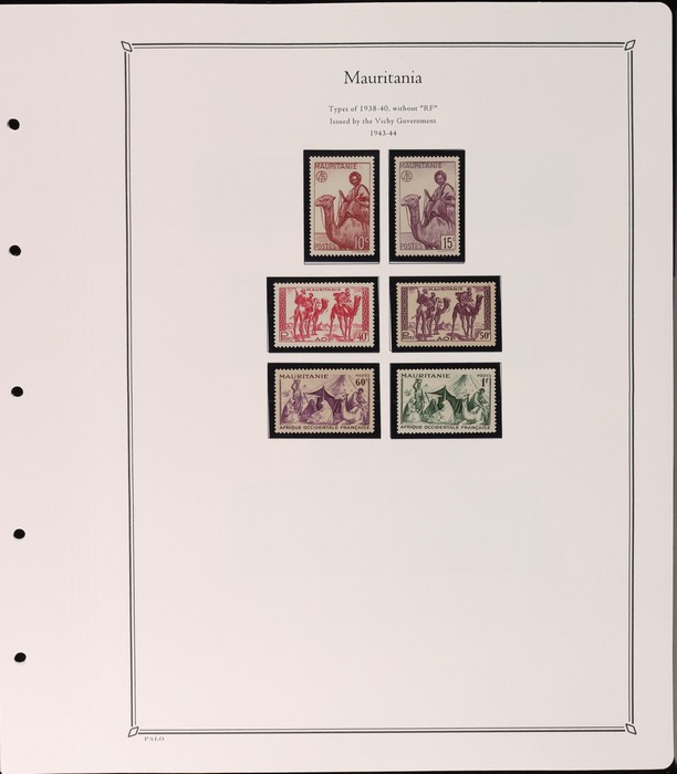 Mint collection on pgs. 1906-07 Faidherbe, Palm Tree & Balley set to 5Fr. 1913-38 Desert Crossing set to 5Fr. 1922-27 Surch set to 20Fr on 5Fr. 1937 exhib M/S. 1938-40 Pic set to 20Fr. 1939 150th Anniv set Airmails inc 1940 set to 6F90 & 1942 set to