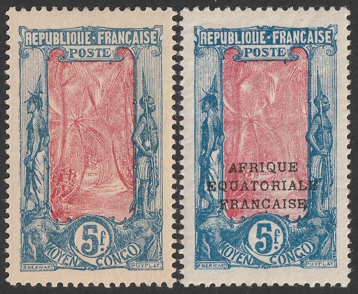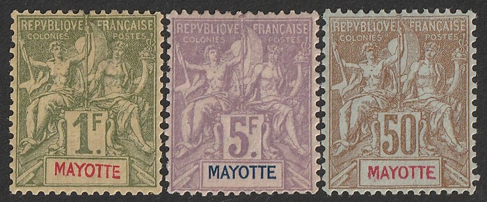 1Fr. 1905-06 Bay View set to 1Fr. 1928 Palm Tree set to 3Fr. F-VF fresh M/MLH. Yv cat €3200+ = A$5700+. (230). (P) (Image1) (Image2)