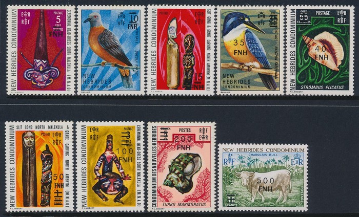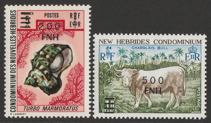 Surch 25FNH & 30FNH Port Vila opts. VF MNH. SG F250-51 cat £370. Yv 478A & 478B cat €600. Key values of set. (2). (P) (Image1)