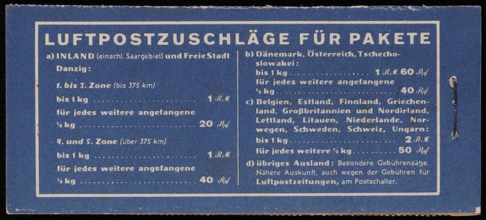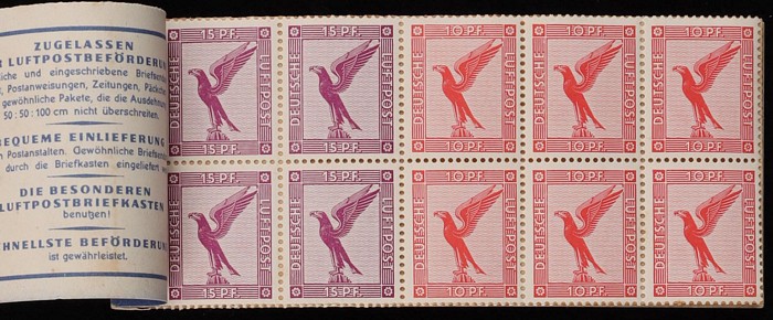 booklet 2RM with panes of Eagle 10pf + 15pf & 20pf + 'X' tabs. MNH, some cover tones. SG SB28 cat £1400. Mi MH20.1 cat €1100. (Image1) (Image2)