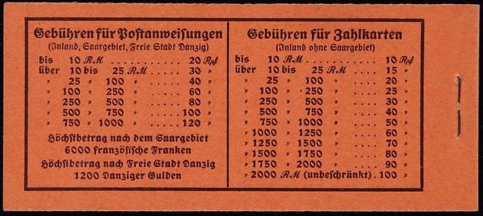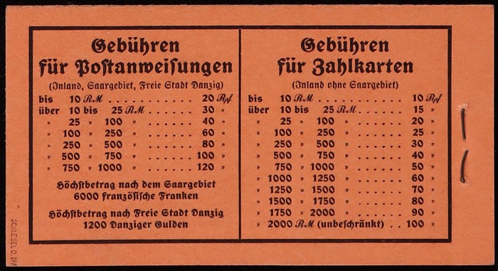 booklet 2RM (orange cover) with 5pf, 6pf, 8pf & 12pf in 3 panes. VF fresh MNH. SG SB33 cat £1100. Mi MH33 cat €900. (P) (Image1) (Image2)