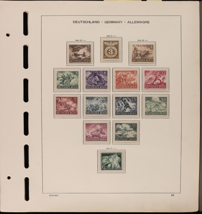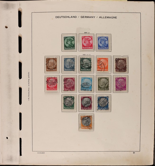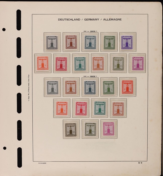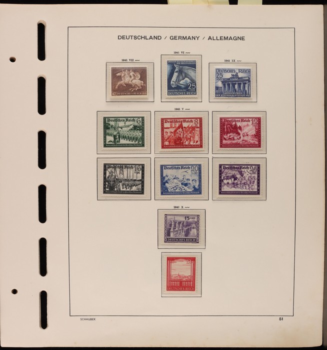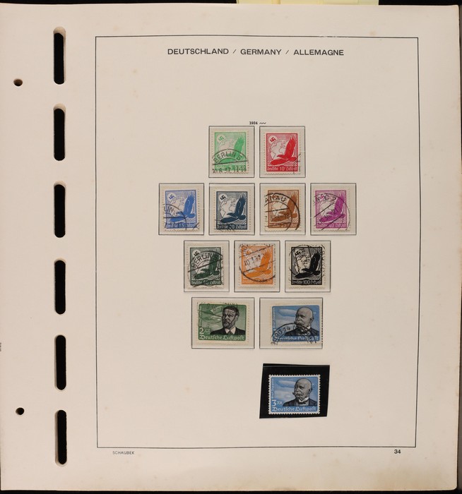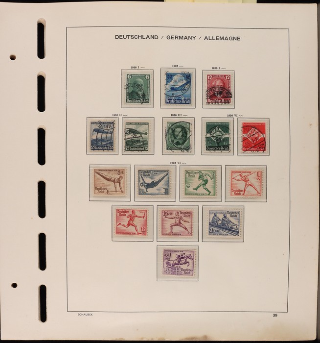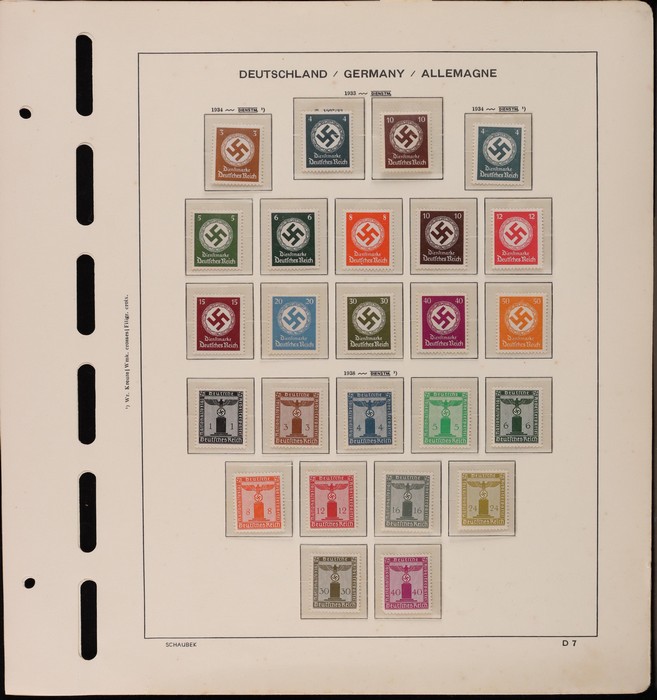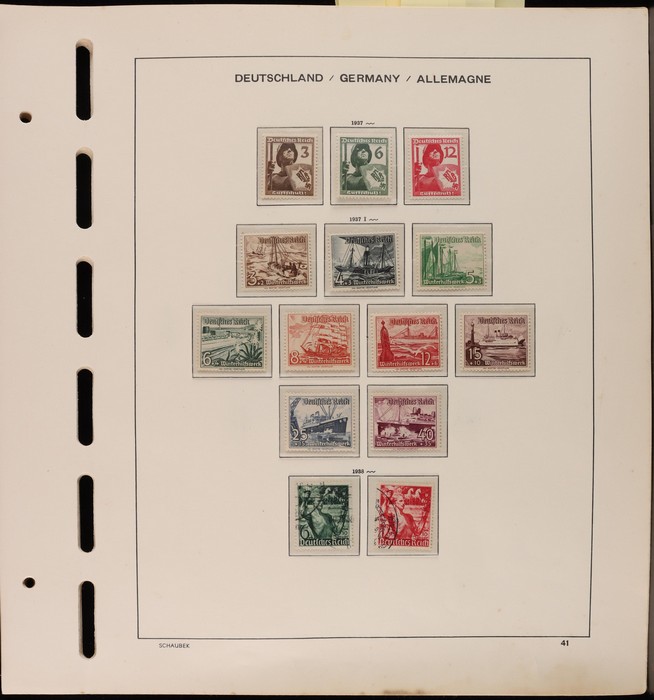 Third Reich collection in Schaubek album & Lighthouse hagner binder with slipcase inc 1933 Welfare set to 40pf (cat £450), 1934Welfare set to 40pf, 1936-45 issues fairly comp, 1935 M/S Philatelic Exhibition (cat £1600 unused), M/S 1936