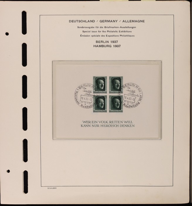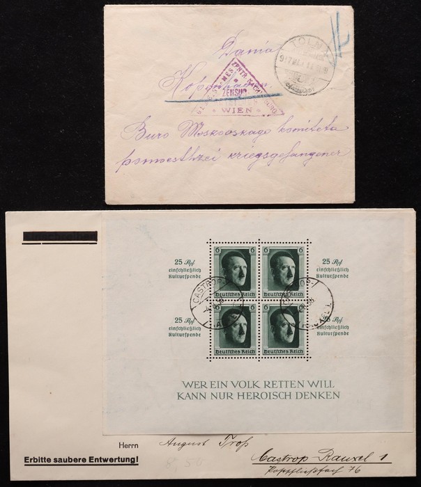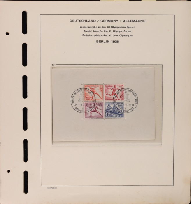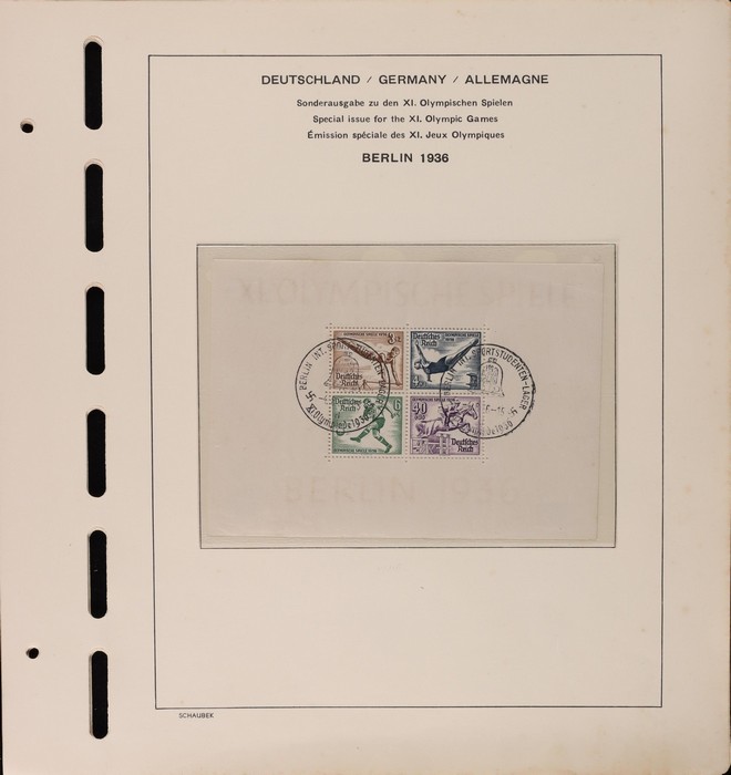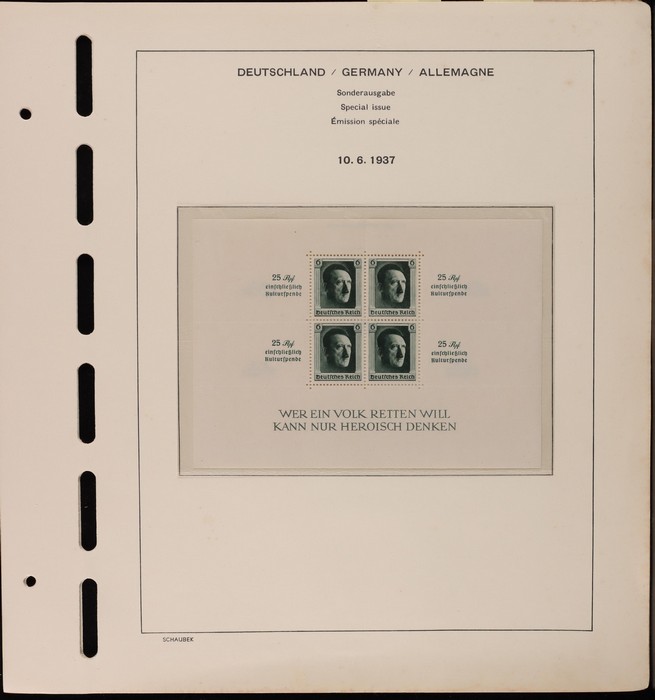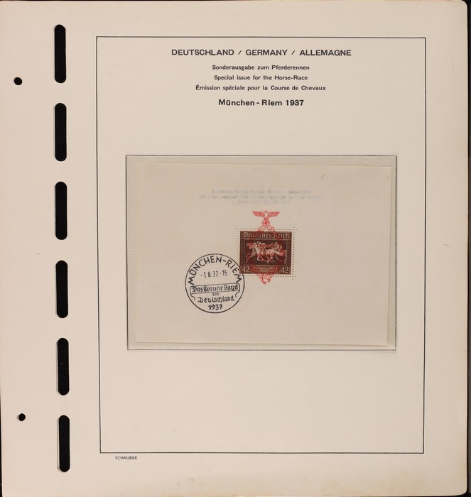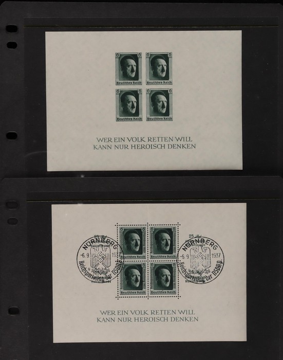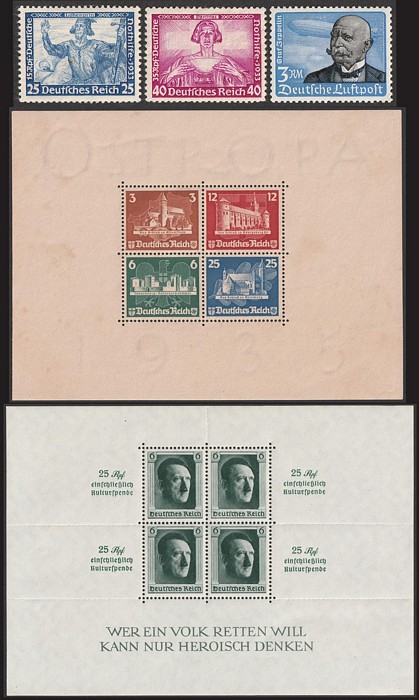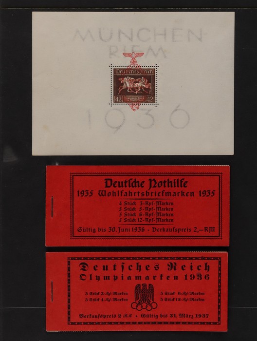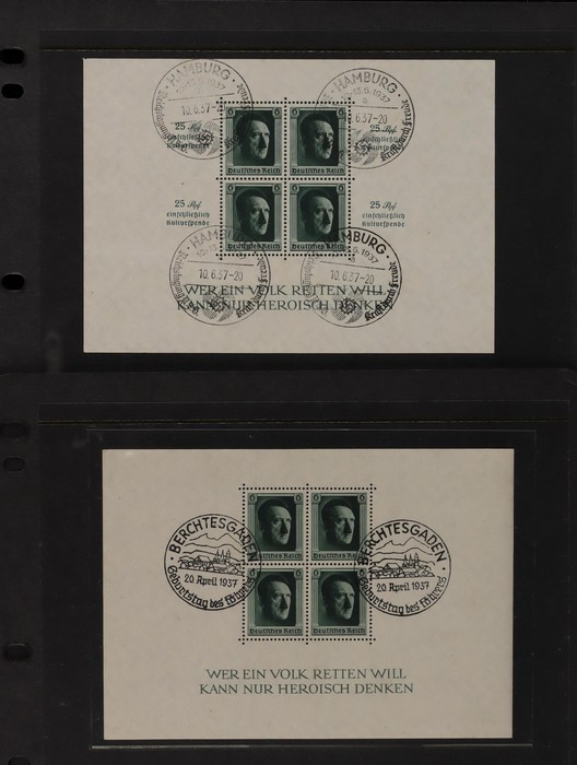 Olympics M/Sheets, 1937 Hitler's Culture Fund & Birthday 6+19f - 8 M/S covering MS 635-7 & MS 638 Nuremberg Congress, 1937 Brown Ribbon with AUG 37 cds, several covers inc Danzig 10-10-39 opts set to 2RM on cover to Berlin (cat £250 U),