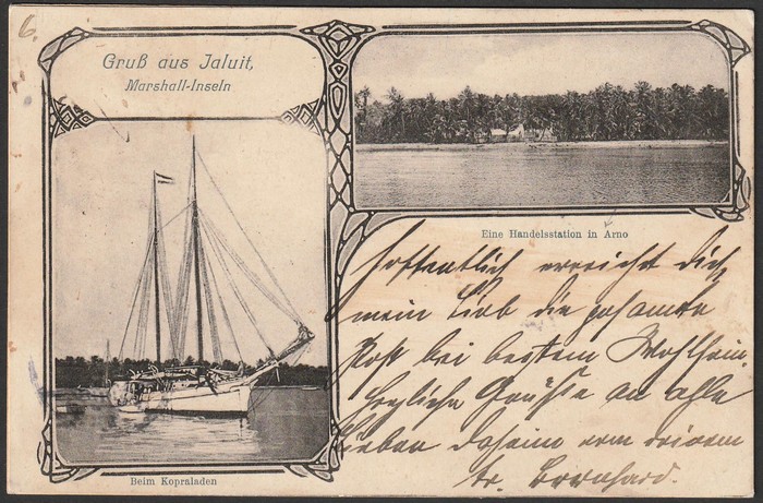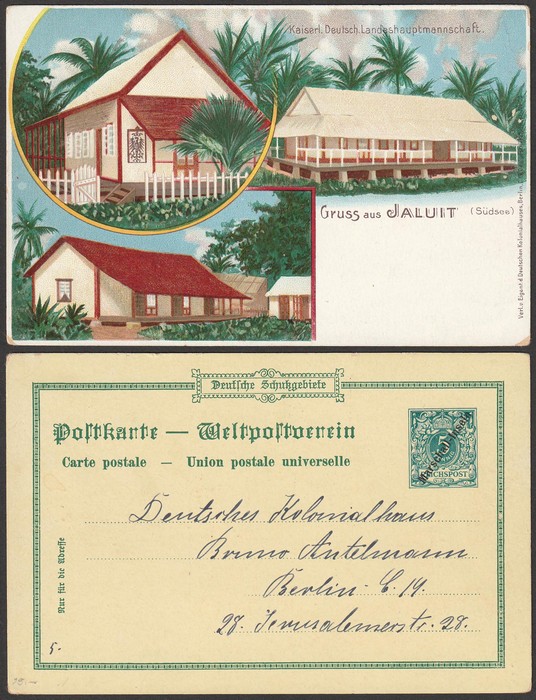 PTPO PPC (Marschall with a 'c') 5pf green & 10pf red with 'Gruss aus Jaluit' colour views. VF fresh UN, 5pf addressed. Mi PP1 & PP2. (2) (Image1) (Image2)