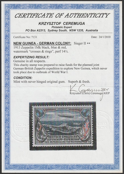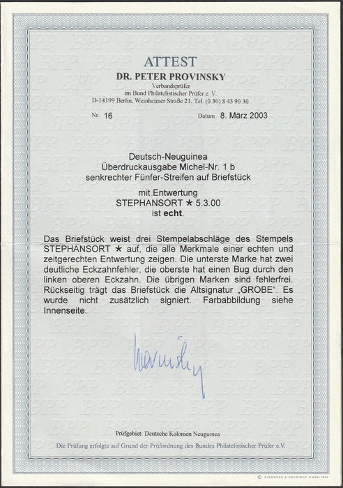 colony. Important New Guinea rarity. Expe Bothe BPP & Pfenniger, plus 2024 Ceremuga photo cert. (P) (Image1)