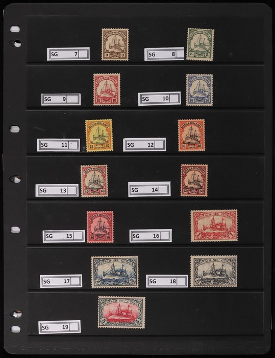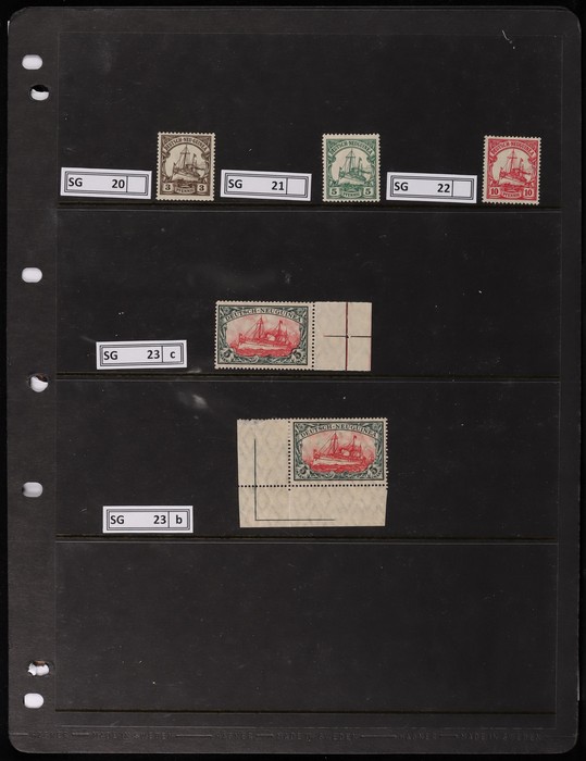 1897-1919 mint collection inc 1897 opt set 3pf-50pf with several scarcer shades 25pf orange, plus 25pf variety 'T in REICHSPOST split at top' (Mi 5II cat €130) 1900 Yacht set 3pf-5Mk & 1914-19 wmk Lozenges 3pf-5Mk (2 diff), Postcards 1898 opt 5,