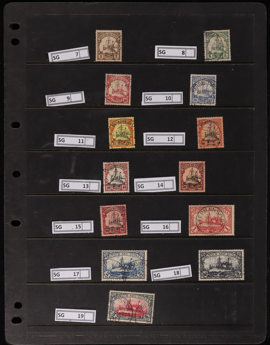 1897-1919 used collection inc 1897 opt set 3pf-50pf with several scarcer shades, 1900 Yacht set 3pf-5Mk & unissued 1914-19 5Mk wmk lozenges (2 diff). F-VFU, 5Mk lozenge VF MLH. SG 1-19 & 23 cat £1600+ = A$3200+. Mi 1-19 & 23 cat €1400+ =