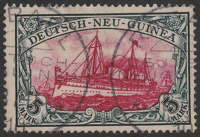Yacht 5Mk carmine & black no wmk VFU, Rabaul cds. Mi 19 cat €600. SG 19 cat £700. Exp Bloch. (P) (Image1) (Image2)