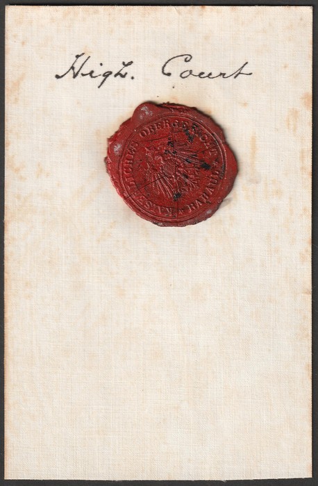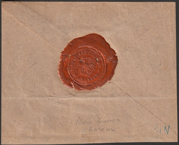 1890s-1910s Wax Seals on linen piece with 'Rabaul High Court', 'Rabaul Birth Death & Marriages & Civil', plus 'Rabaul Customs office' on back of cover, German Official Seals used to seal envelopes & for documents. Unusual & rare. (3). (Image1) (Image2)
