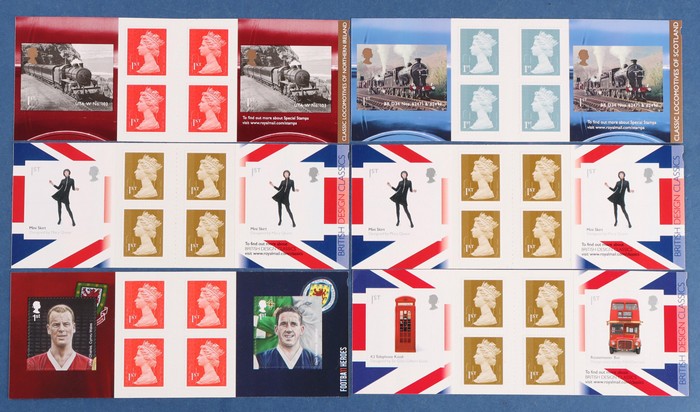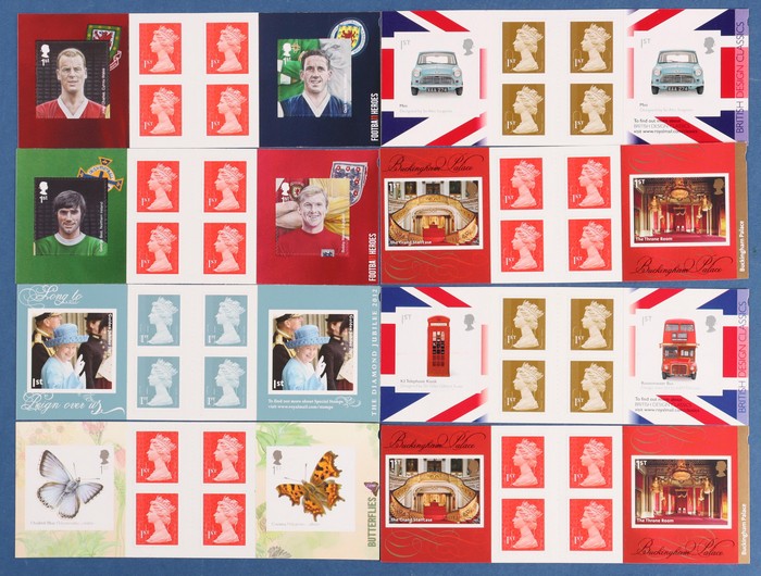 2nd Class booklets pane of 12 booklet (2), 1st Class pane of 4 large (6 booklets), pane of 6 1st Class booklet (3) & pane of 12 1st Class booklet (5). Current FV £164 (cat £175). Grand total FV £190 = A$400. (53) (Image1) (Image2)