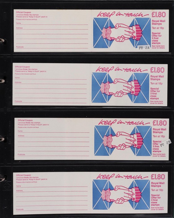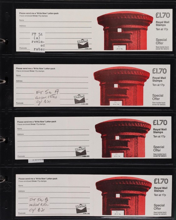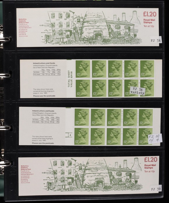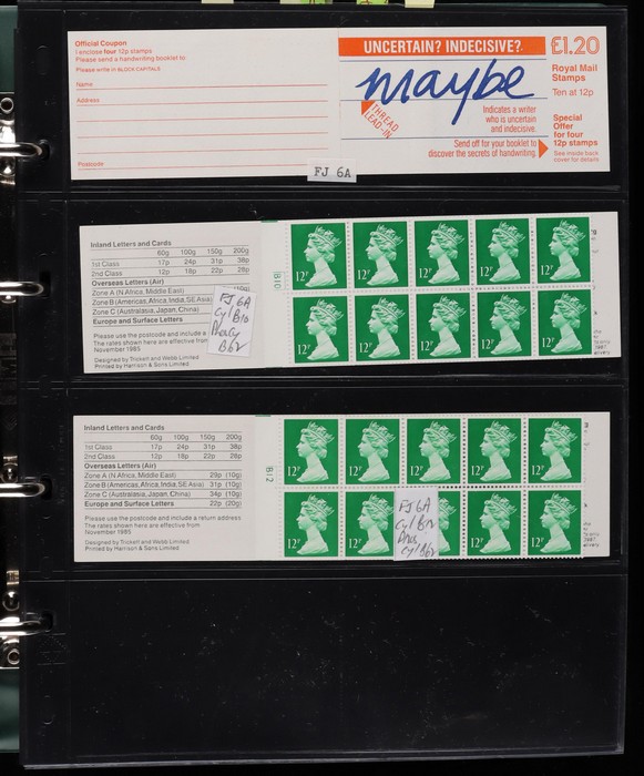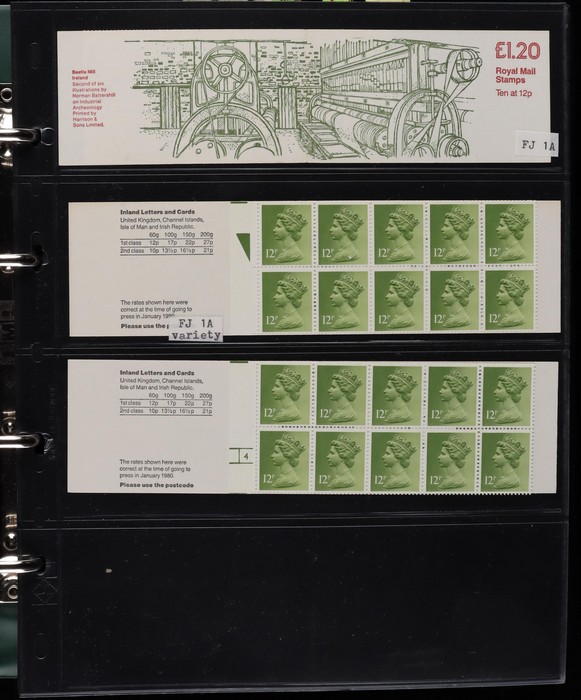collection Part 2 1980-89 in Lighthouse binder. Noted £1.20 booklets SG FJ1-FJ6, £1.25 booklets SG FK1-FK8, £1.30 booklets SG FL1-FL14, £1.40 booklets SG FM1-FM6, £1.43 booklets SG FN1-FN6, £1.46 booklets SG