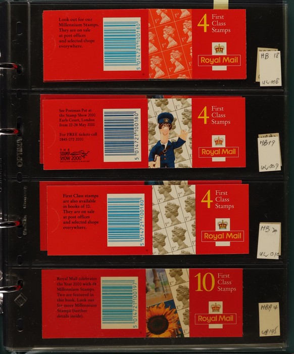cylinders, variations etc. Also 1999-2000 panes of 8 Machins & pr of Millennium stamps SG HBA1-HBA4, also 1989-98 panes of 10 2nd Class stamps SG HC1-HC22 with extras/variations, cylinders etc. An attractive, neatly laid out & identified collection