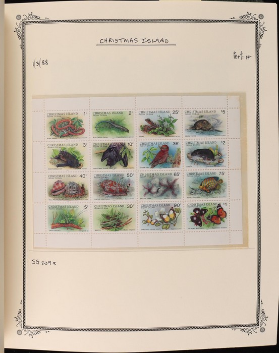 298 imageChristmas Island collection to 2009 in 3 Seven Seas hingeless albums with slipcases (new retail $400) with 1958 QEII to $1, 1963 Pic sets (3) in vert prs MNH/MLH, 1968 Fish set to $1, 1973 Christmas set blks of 10 & 1978 QEII Silver Jubilee M/Sheet pane of 4, 1988 Wildlife set to $5, plus sheetlet, all MNH (retail $300), plus other MNH to 2010 (FV $540) in blks, multiples, booklet panes & 2002-09 Lunar New Year sheetlets, for a total of $1240. (Image1) (Image2) (Image3) (Image4) (Image5) (Image6) (Image7) (Image8) (Image9) (Image10) (Image11) (Image12) (Image13) (Image14)