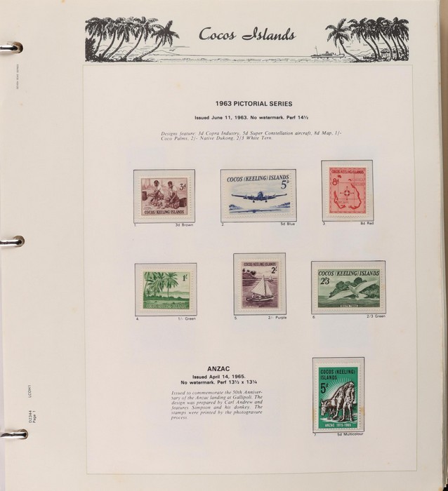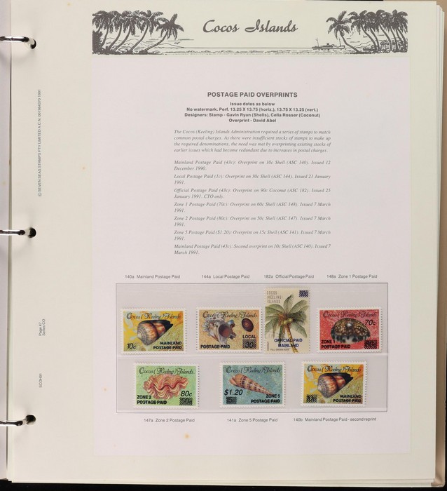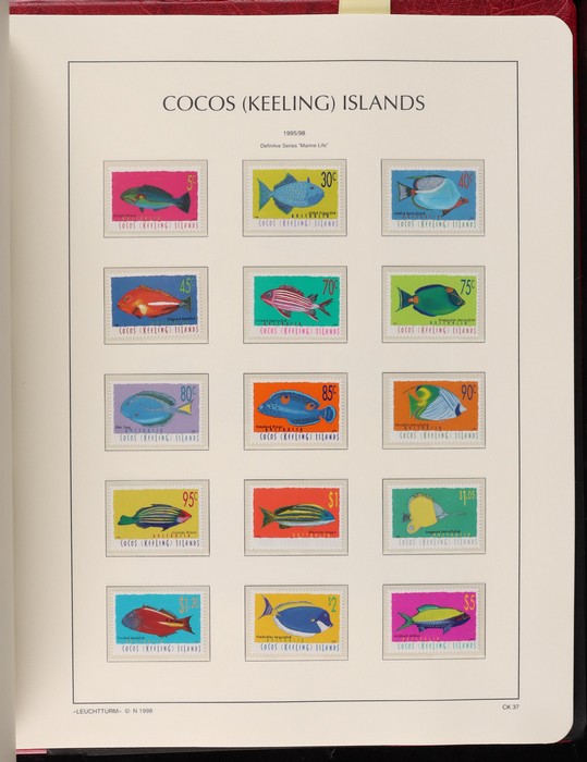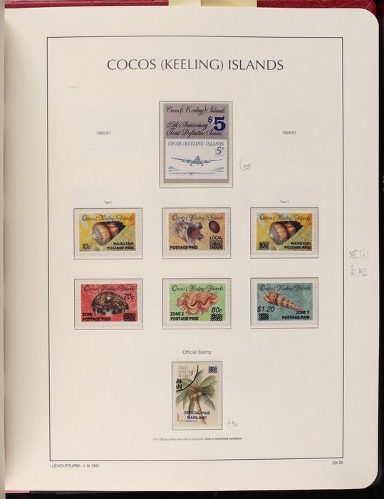 303 imageCocos & Keeling Islands 1963-2014 collection in Lighthouse Country hingeless pages album & blank pages to 2020 inc 1963 set to 2/3, 1982 Butterflies to $3, 1985 Shells to $3, 1988 Flora to $3, 1990 Surcharges inc SG O1 CTO (cat £120), 1992 Crustaceans set to $3, 1995 Marine Life set to $5. Also stamp booklets 1 & 2. Mostly comp, many sets & M/S, all diff. VF fresh MNH. FV $350, retail $1300 + $200 for album, total $1500+. (500, 20+ M/S) (Image1) (Image2) (Image3) (Image4) (Image5) (Image6) (Image7) (Image8) (Image9) (Image10) (Image11) (Image12) (Image13)