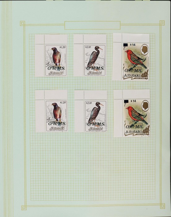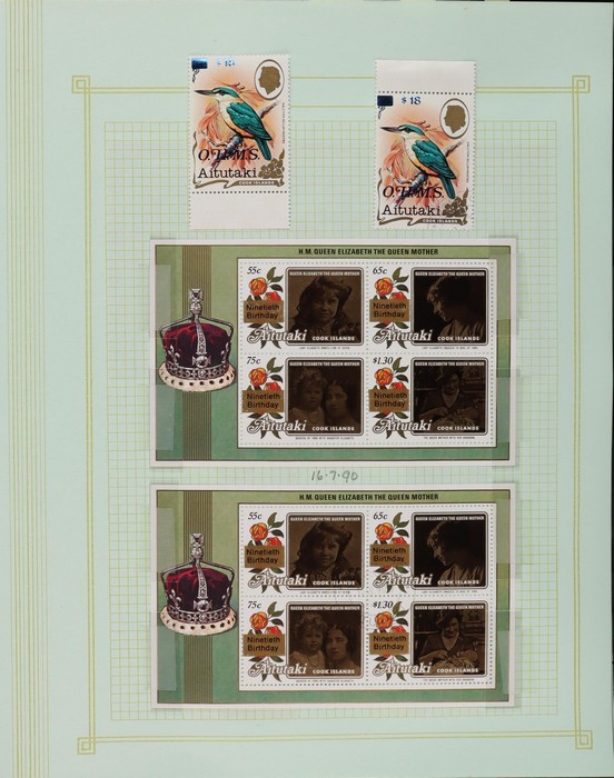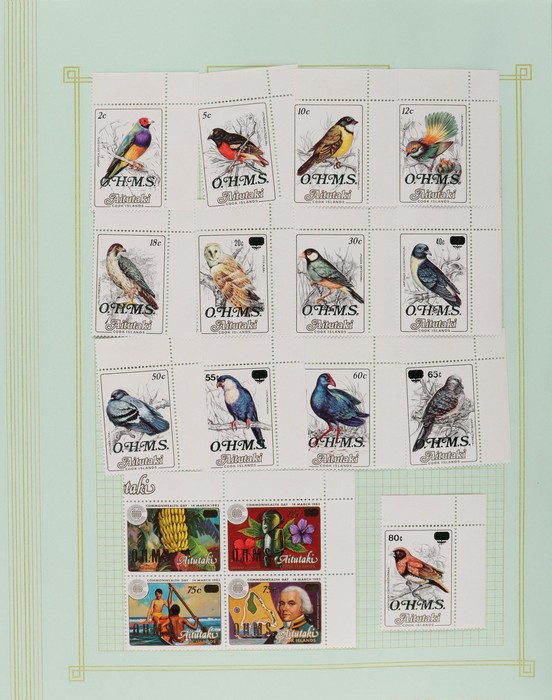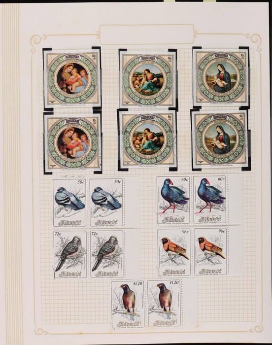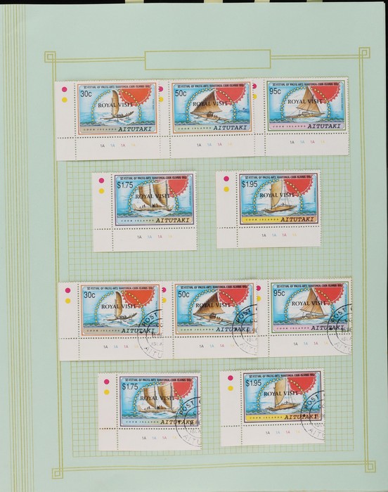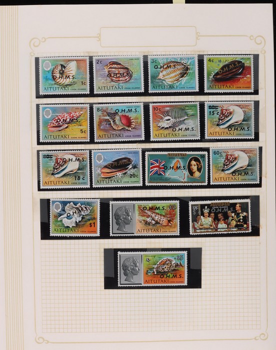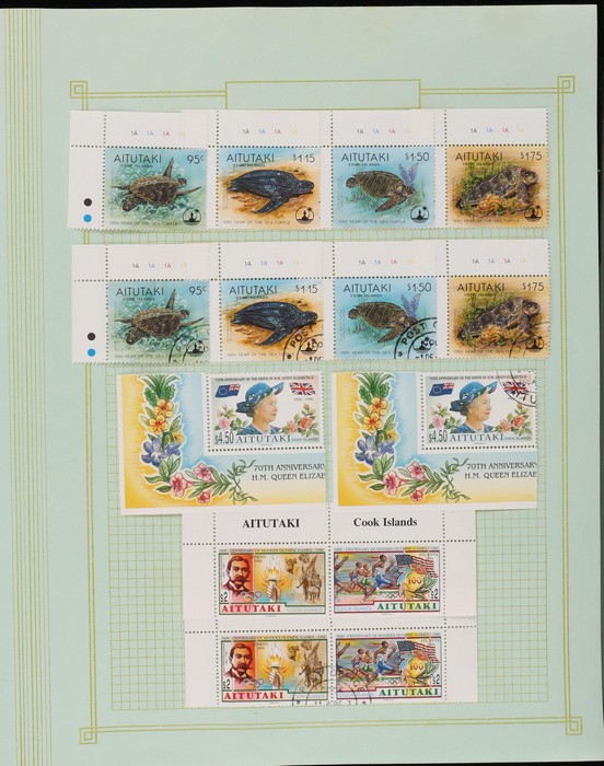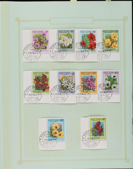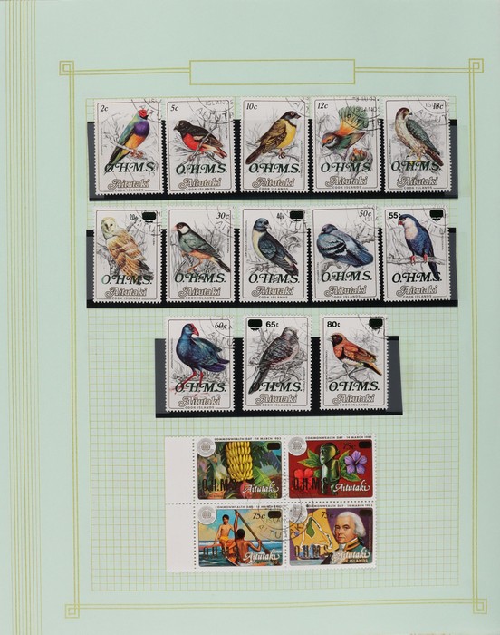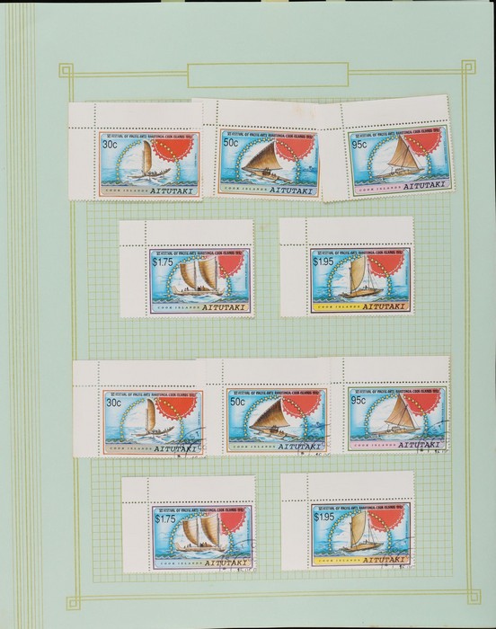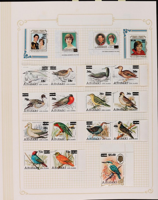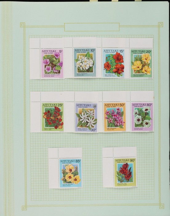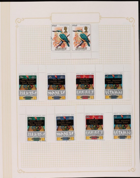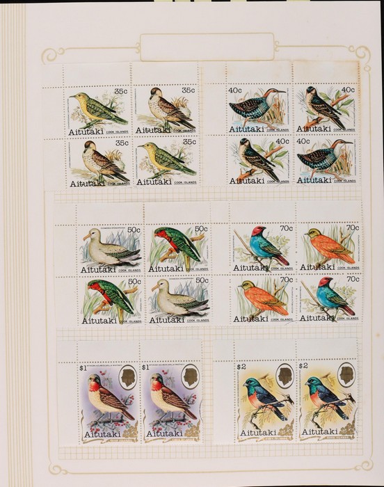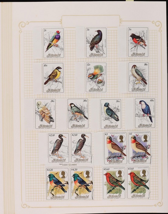 310 imageCook Islands - Aitutaki: 1972-96 M/U collection in springback album with 170 Pic/Commem sets to 1996 Olympics both M/MNH & CTO inc 1974 Shells to $5 (cat £76), 1978 OHMS opts on Shells to $5 (cat £60), 1981 Birds to $5 Kingfisher (£125), 1983 Surcharge set of 19 to $5.60 (cat £120). 1984 Birds set of 20 to $9.60 (cat £160). 1985 OHMS opt set of 25 to $9.60 (£200). 1989 Moon Landing 20th Anniv (£35). 1992 Pacific Arts set inc Royal Visit opts (£45) & 1994 Flowers set to $5 Hibiscus MNH/CTO (cat £40). Then 60 M & 60 CTO M/Sheet, plus some uncounted extras at the back. Mentioned Pic sets add up to £860 (A$1600) with grand total much higher with a FV NZ$1100 = A$1000. Some light foxing, a mostly fresh & clean collection. (100s) (Image1) (Image2) (Image3) (Image4) (Image5) (Image6) (Image7) (Image8) (Image9) (Image10) (Image11) (Image12) (Image13) (Image14) (Image15) (Image16) (Image17) (Image18) (Image19) (Image20) (Image21) (Image22) (Image23) (Image24) (Image25) (Image26)