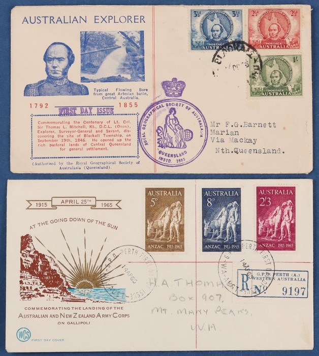 322 FDC collection in 20 large size FDC albums inc 2 Lighthouse with binders. Inc France 1954-2004 WWII Commemorative covers mostly relating to D-Day & other battles inc Resistance etc, in 3 albums (approx 300), plus few Germany in another. Australia 1966-early 2025 collection in 16 albums, fairly comprehensive inc 1971 Christmas blk of 7, $20 Painting, $220 International & some M/Sheets. Strength in post 2000 issues, later issues with very high FV/costs. Nearly all fresh & clean. (Guesstimate 1000-1500 covers).