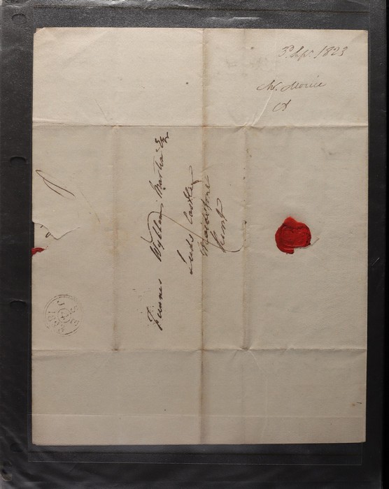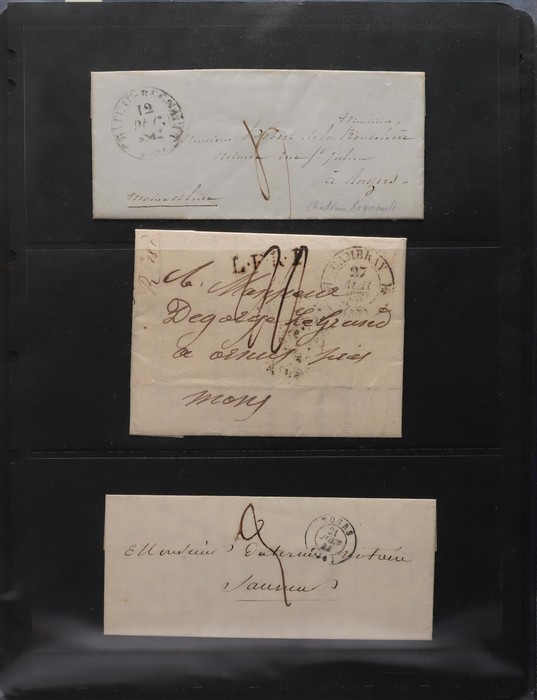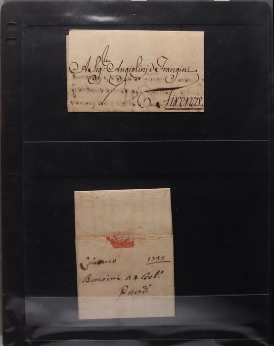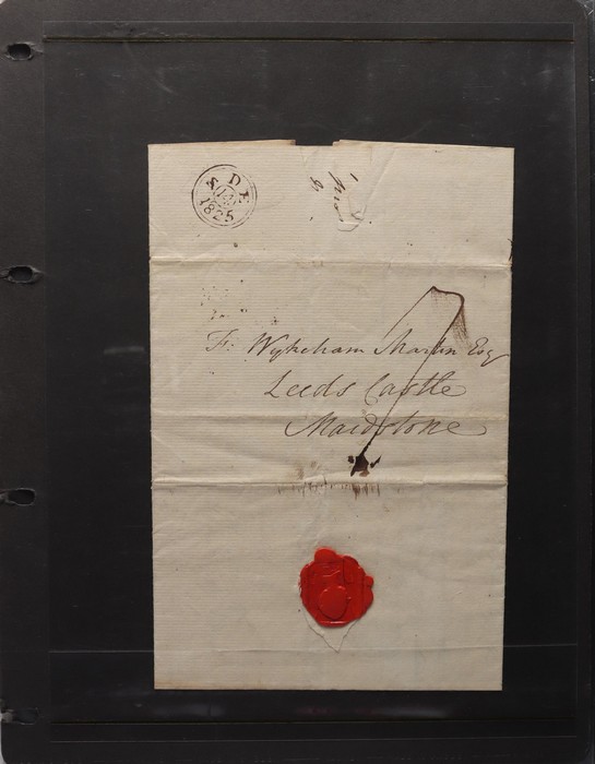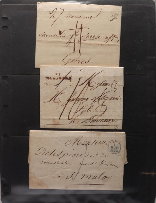312 imageCovers - Europe: Fascinating collection in 2 albums inc England 1793-1839 (19) of mostly entires related to Leeds Castle, Maidstone, Kent & specifically Charters Wykeham-Martin Esq (1801-70) who resided at Leeds Castle inc correspondence from his grandparent to his father congratulating the birth of Charles 1801 (Sep 11), various markings, mileage, travel post pmks, plus book on history of Leeds Castle. Also European collection of Postal History 1733-1860. Inc Italy a range of entries 1733-39 (12) many addressed to Angiolini Frangini of Florence, correspondence may well be of interest & others. France inc 1832-45 collection of covers/entries, many addressed to Saumur. Some others inc 1880-84 (17) covers franked 15c P+C etc. Various others. A fascinating collection of social history. Mostly F-VF condition. (c80) (Image1) (Image2) (Image3) (Image4) (Image5) (Image6) (Image7) (Image8) (Image9) (Image10) (Image11) (Image12) (Image13) (Image14) (Image15)