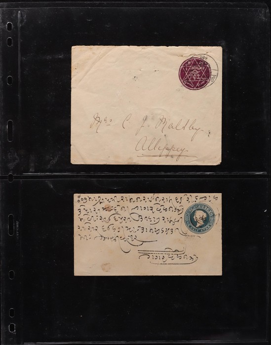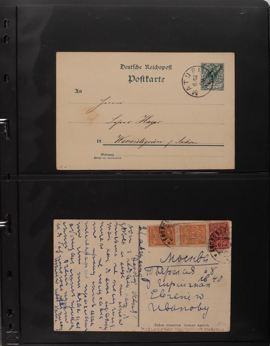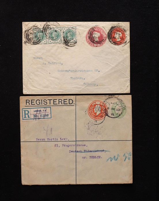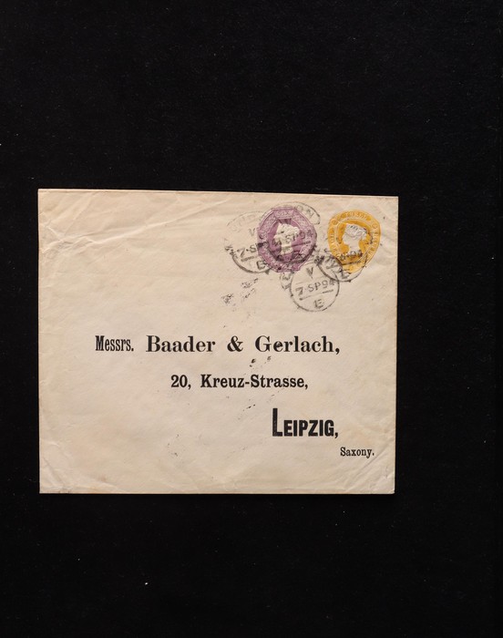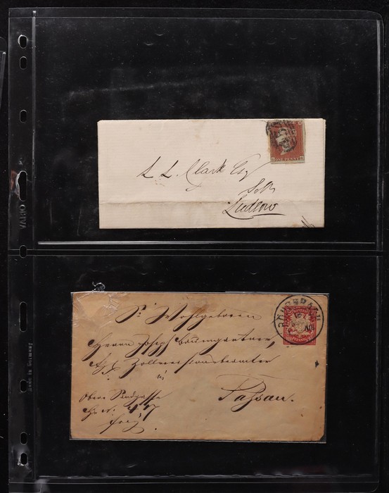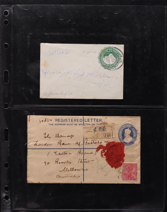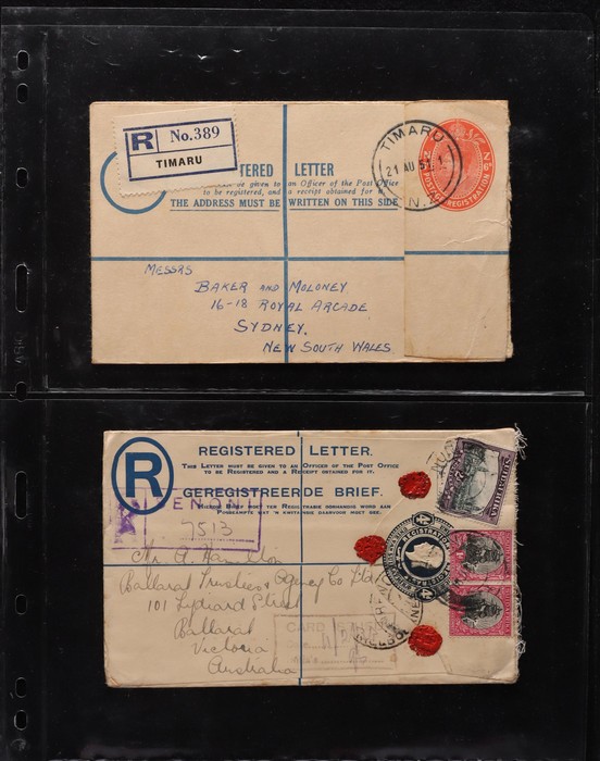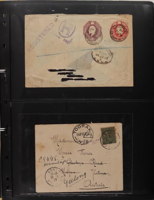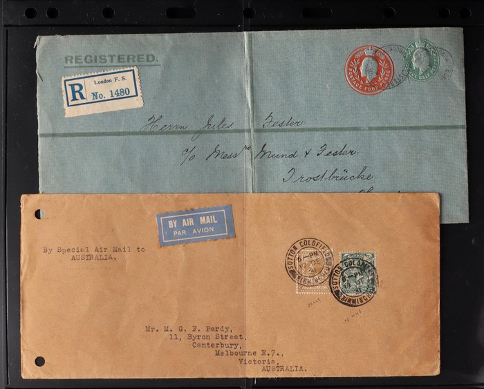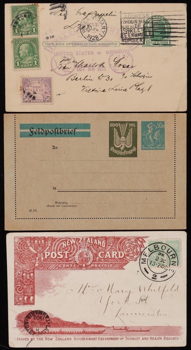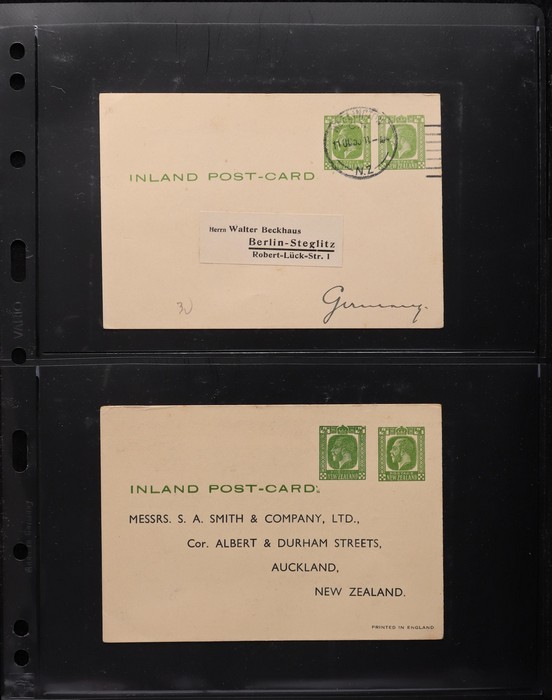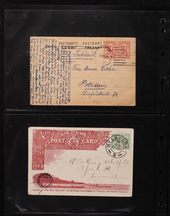 313 imageCovers - Postal History: 1850s-1970s with GB 1854 lettersheet franked 1d brown, 1939 Airmail to USA franked Seahorses 2/6 & 3d, Postal Stationery inc 'Doubletons' KEVII 1d+6d, 1d+½d, 4d+½d (4), QV doubles 3d+1d, 6d+1½d, QEII inc 3d + KGVI 1½d & 3d+2½d large wrapper. NZ stationery postcards, lettercards, envelopes, wrappers, Reg envelope etc, other stationery from Spain, Bavaria, Finland, NZ, Germany, Honduras, Canada, Sth Africa & German New Guinea with Matupi pmk. Also a few FFC inc 1940 NZ-Aust. India inc Cochin envelopes (3), & QV-KGVI range. Postcard & Airletter opt Pakistan. USA postcards inc 1928 Graf Zeppelin flight to Germany & 1873-1930s single & double reply, most UN inc range of earlier cat US$200+ & 1876 3d red & green UN ($60)., plus a Mexico envelope tripleton. Also a few hagners of stamps Bahawalpur, Burma, Pakistan, Ireland & 5 diff 1948 Silver Wedding opts on GB set. (205 covers/cards, 180 stamps) (Image1) (Image2) (Image3) (Image4) (Image5) (Image6) (Image7) (Image8) (Image9) (Image10) (Image11) (Image12) (Image13) (Image14) (Image15) (Image16) (Image17) (Image18) (Image19) (Image20) (Image21) (Image22) (Image23) (Image24) (Image25) (Image26) (Image27) (Image28) (Image29) (Image30) (Image31) (Image32) (Image33) (Image34)
