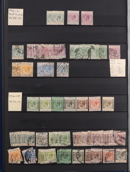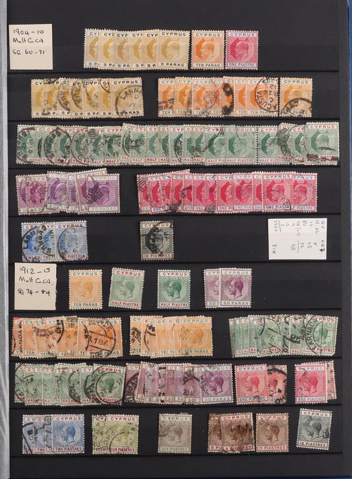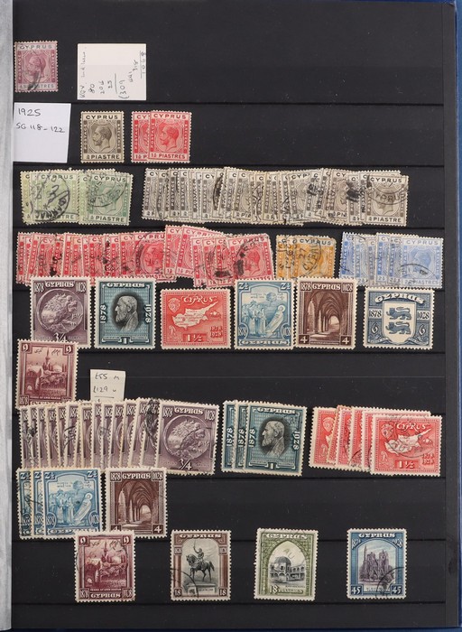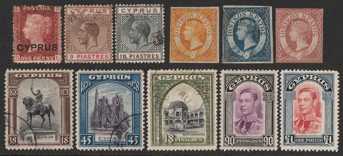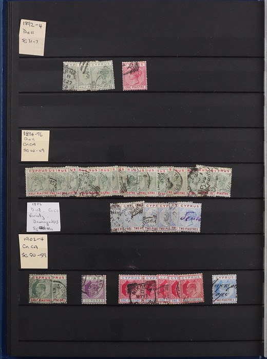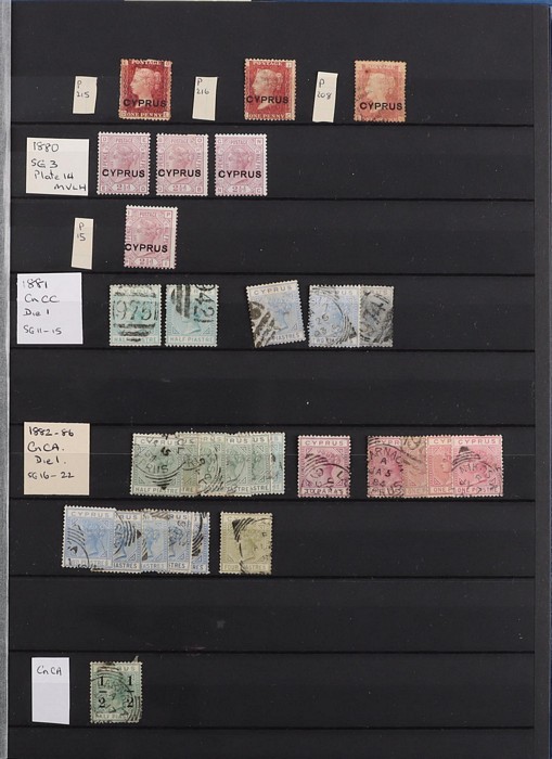 314 imageCyprus 1880-1980s collector's duplicates in 32 pg Lighthouse s/book inc 1880 1d brown opt (3 plates 208, 215, 216), 1881 QV to 2pi, 1882 to 4pi, 1894-96 to 2pi, 1902-14 KEVII to 18pi, 1912-15 KGV to 9pi, 1921-3 to 18pi, 1924-28 to 18pi, 1928 Anniv to 45pi, 1934 to 18pi, 1938-51 KGV to £1 Mint & 18pi Used, significant duplication in early period to 1960s, large majority of Cyprus cat value (£3400) is pre 1950s., plus range of British Occupation of Batum 1919-21 Mint to 5r, large duplication (500+), unchecked & sold as is. Ionian Islands set of 3 (cat £240) & British PO in Crete mainly reprints. Mainly G-VFU, some G-VF MNH (about 10%). SG est cat £3800+ = A$7600, plus the Batum £1000+. (1300 + 1 M/S) (P) (Image1) (Image2) (Image3) (Image4) (Image5) (Image6) (Image7) (Image8) (Image9) (Image10) (Image11) (Image12) (Image13) (Image14) (Image15)