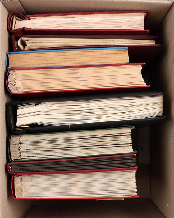 315 imageDouble carton British Commonwealth lot with GB to 1970s inc QEII Machins to £5, 1948 KGVI SW £1 blue, 1924 Wembley sets (2) & 1874 QEII 6d violet embossed cut square (SG cat £1000). Another s/book with more GB inc KGV Seahorses 2/6 (8), 5/- (5) & 10/- (3). 1952 KGVI £1 brown (8), plus 1970s Commem sets in springback binder. Australia mess inc 1930s-40s imprint blks (50) to 2/6 Aborigine inc 1937 KGVI 1/4 magenta (3), plus early decimals MNH to $4 Navigator. Australia Territories collection inc AAT pre-decimals Christmas Is blks of 4 inc 1963 Pics to $1 Bird CTO & 1982 Birds to $4 MNH. Cocos Is 1963 pre-dec set blk of 4 & 1982 Moths to $3. Nauru blks of 4 to 1985 Christmas in another volume, plus more Territories in Seven Seas illustrated album. Also small 1940s-50s Netherlands collection in s/book & France accumulation in large s/book. Very messy inc small box with unsorted Pics in envelopes. Very diverse with 12 albums in total, mixed M/MNH/F-VFU. (Image1) (Image2) (Image3) (Image4) (Image5) (Image6) (Image7) (Image8) (Image9) (Image10) (Image11) (Image12) (Image13) (Image14) (Image15) (Image16) (Image17) (Image18) (Image19) (Image20) (Image21) (Image22) (Image23) (Image24) (Image25) (Image26) (Image27) (Image28) (Image29)