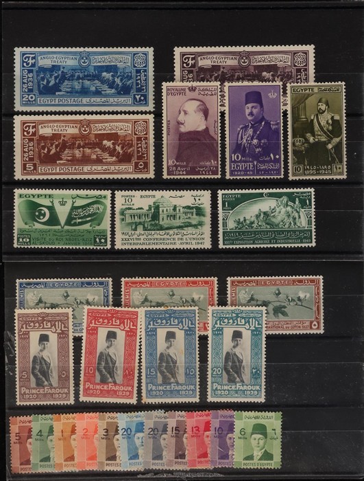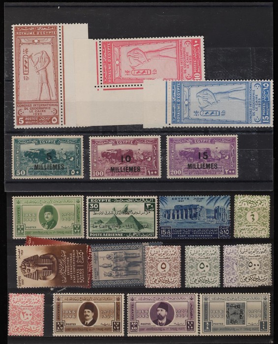 316 imageEgypt 1879-1949 MNH selection inc 1879-1909 Sphinx & Pyramid range to 5Pi. 1925 Geographical Congress set. 1933 Air Congress set. Range of 1940s Commems & Defs. F-VF fresh M/MNH, majority MNH. SG cat £365+, MNH should be at least double, so est cat £700+. (77) (Image1) (Image2) (Image3) (Image4) (Image5) (Image6)