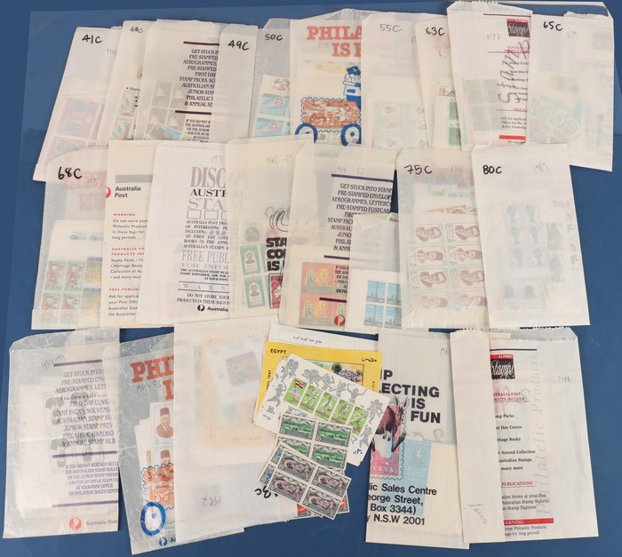 317 imageEgypt: 1958-88 MNH accumulation in glassines, mostly multiples inc blks of 4 & similar. Extensive coverage across period, noted 1958 Railway set in blks of 4, 1984 Olympics inc M/sheet (6), 1985 Air in blks of 4, 1985 Football Victories sets (5), 1987 Tourism in blks of 4 & M/S (2), 1986 Post Day (6 sets), 1988 Olympics M/S (4), 1988 UN Day in bks of 6 & many others inc Football (Soccer), Olympic & Historically themed. VF. SG cat £4380 = A$9000. Attractive seldom offered issues. (1000+, 20+ M/S) (Image1) (Image2) (Image3) (Image4)