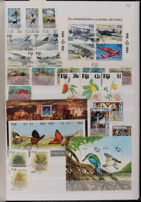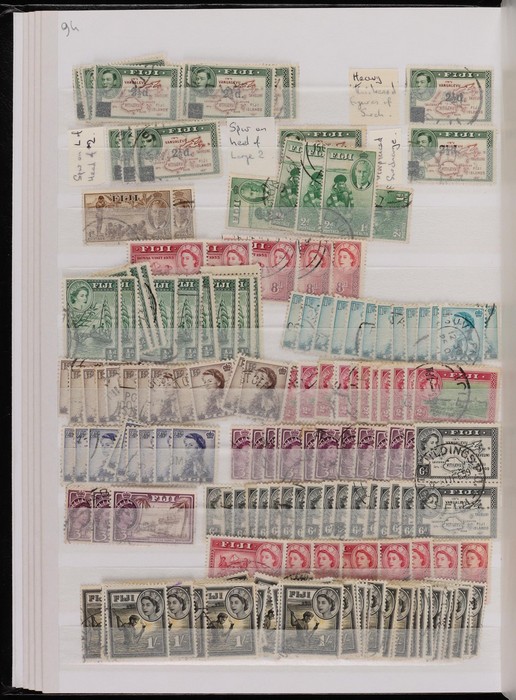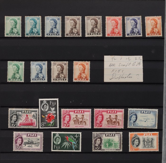323 imageFiji 1878-1990s collector's duplicates in chronological order in (2) 32 pg Lighthouse s/books 1 with M, 1 U inc 1891 to 5d, 1903 KEVII to 1/-, 1912 KGV to 1/-, 1938-55 large specialist collection KGVI to 5/-, various shades, perfs, Die I, Die II, some varieties inc 2½d 'extra island' (SG 256ba), 1954 QEII to £1, 1971 Birds & Flowers to $2 M & U, range to 1990s inc M/S. Most of the cat value is in pre 1950s. Some earlies in mixed condition as expected. Mostly G-VF M/U. SG est cat £3300+ = A$6600. (2300, 25+ M/S) (Image1) (Image2) (Image3) (Image4) (Image5) (Image6) (Image7) (Image8) (Image9) (Image10) (Image11) (Image12) (Image13) (Image14) (Image15) (Image16)
