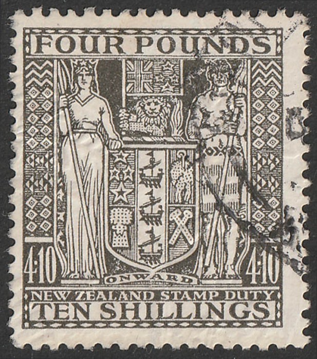 £4.10 grey Postal Fiscals single wmk Cowan paper. VF F/C. SG F167 cat £2500. CP Z51a cat NZ$4500 - both as FU. (P) (Image1)