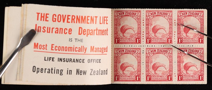 booklet with 1d red panes with red bars & adverts in margins (perf 14x15). VF fresh M/MNH, 'exploded' as displayed on page. CP W4j cat NZ$3500. SG SB12a cat £1700. (P)