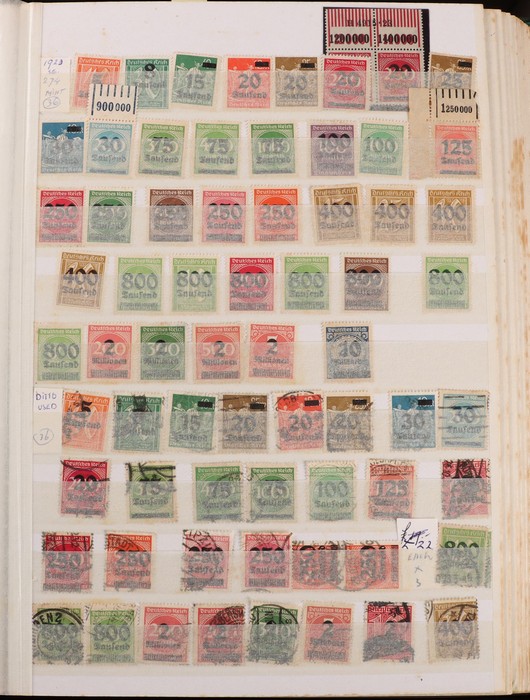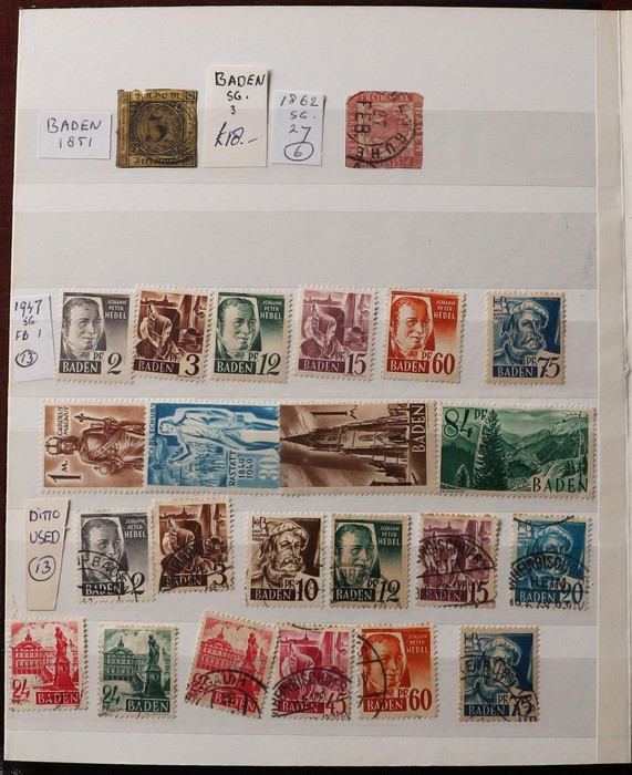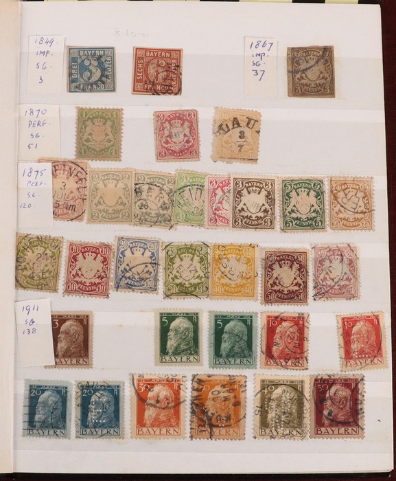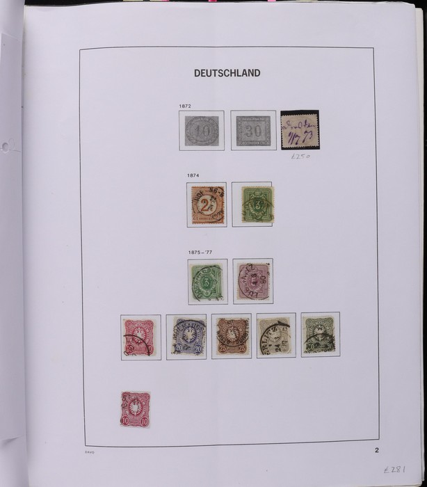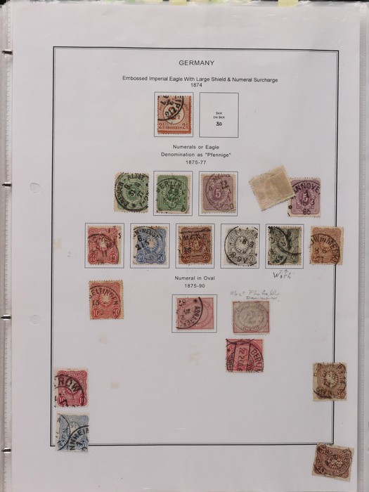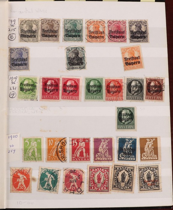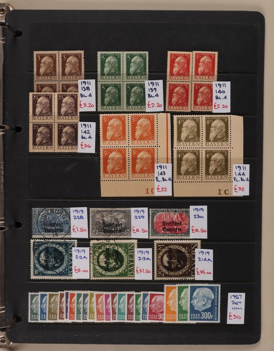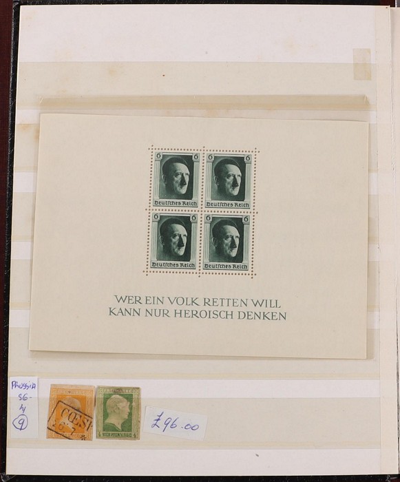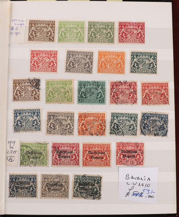 332 imageGermany 1850s-2010 valuable & extensive collection in 22 various s/books & 3 Linder illustrated albums commencing with German States inc Bavaria (130+) 1850s 3k & 6k imperf, 1880 Arms to 80pf, 1911 Luitpold to 2m, range to 1920s inc 1m Official, Saxony (20+) 1850 Arms 3pf (as is & not counted in cat value), 1851 Friedrich to 3ngr, 1855 Johann to 3ngr, 1863 Arms to 3ngr, Prussia 1850s 3gr & 4pf, Oldenberg (5) 1861 imperf to 3g yellow (as is & not counted), Heligoland (10) 1867 to 6sch & 1875 3pf U, range of WWI German Occup issues inc Belgium (70+), 1916 various to 2f50c, Poland (18), Eupen & Malmedy (10), Russia (20+) etc, others inc Danzig (150+), Allenstein various 1920-26 issues inc Official to 10m, Memel (60+), Lithuania (8) etc, Saar 1920-59, Germany inc 1872 to 5g, 1880 to 50pf, 1902 to 5m, extensive range to 1945 inc Inflation issues to 100,000m, 1928 President comp to 80pf, 1932 Hitler M/S etc Bohemia & Moravia (150+), Allied Occup 1945 to 80pf, 1946 to 1m inc apparent 75pf offset, 1949 Buildings to 5DM, Soviet zone 1948 Politicians to 84pf, West Germany7 extensive range 1950s to 200g inc 1970-76 & 1982-86 comp MNH on Linder pgs, East Germany 1950s-90s, Berlin (West) 1949-90 inc 1951 Bell set comp, 1986 Famous Women comp to 500pf (MNH & FU sets cat £360), small range of German colonies. 1998-2004 Deutsche Post first day cds. This is a very extensive collection which has only briefly been summarised & has a lot of potential. Some earlies mixed & albums have toning but largely not affecting stamps. Mostly G-VFU, some VF superb MNH. SG cat £20,000+ = A$40,000+. (10,000 + 50+ M/S) (Image1) (Image2) (Image3) (Image4) (Image5) (Image6) (Image7) (Image8) (Image9) (Image10) (Image11) (Image12) (Image13) (Image14) (Image15) (Image16) (Image17) (Image18) (Image19) (Image20) (Image21) (Image22) (Image23) (Image24) (Image25) (Image26) (Image27) (Image28) (Image29) (Image30) (Image31) (Image32) (Image33) (Image34) (Image35)