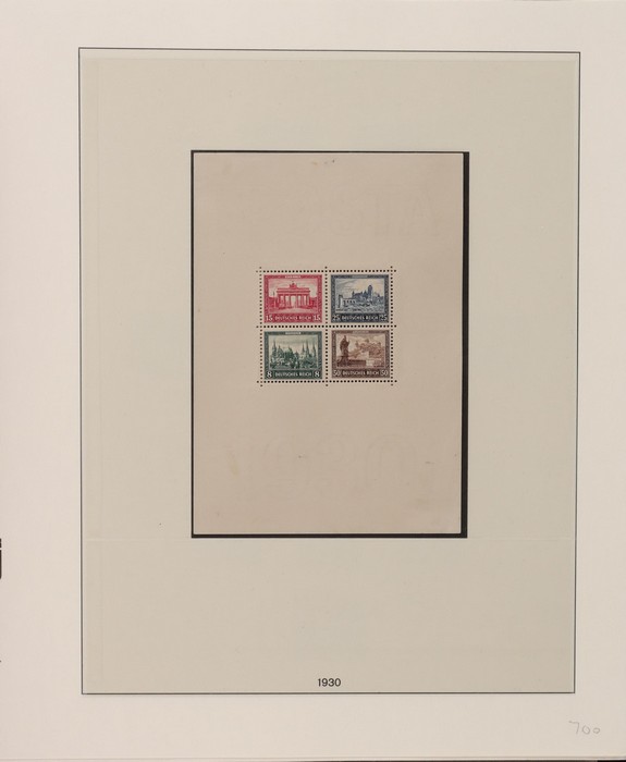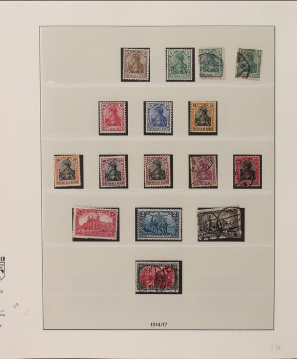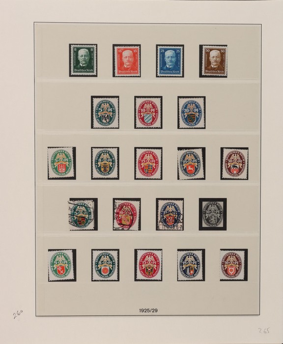 334 imageGermany 1872-1989 Three Volume collection with 1872 Shields inc Small Shield 1/4g, 1/2g, 5g, 1872 Large Shield 1/4g, 5g, other earlies Weimar Republic selection inc Bavaria issues opt 'Deutsches Reich' to 20Mk, 1922-23 & 1925 Inflationary selection (unchecked), 1923 Castles set, 1928 Airs part set to 3Mk, 1928-32 President set, 1930 Exhibition M/Sheet M, plus 8pf (2) & 15pf G-VFU, 1933 2Mk Chicago Flight FU, 1934 Airs set, 1920s-30s Welfare Fund sets/part sets, 1936 Olympics M & U. Also Officials, plus other issues to 1945. Post WWII Allied Occupation issues M&U with many extras. Soviet Zone inc 1948 Presentation to 80pf (11), 60pf (45), lower values many extras U. West Berlin mostly 1948 used - 1989 inc 1948 Black opts to 80pf, Red opts to 80pf, 1949 UPU set, 1949 Goethe set, 1945 Surch 2 sets, 1951 Bell set at left 20pf, 40pf, 1951-52 Bell at right set, 1953 Bell at centre, 1952 Olympics set, 1953 Uprising set, 1957 Buildings set, 1986 Famous Women set, extensive charity sets 1960s to 1980s, plus others. Some sl mixed condition, plus duplication where noted, mostly G-VFU, with some F-VFM, MNH. SG cat £8100 = A$16,000. (few 1000) (Image1) (Image2) (Image3) (Image4) (Image5) (Image6) (Image7) (Image8) (Image9) (Image10) (Image11) (Image12) (Image13) (Image14) (Image15) (Image16) (Image17) (Image18) (Image19) (Image20) (Image21) (Image22) (Image23) (Image24) (Image25) (Image26) (Image27) (Image28) (Image29)