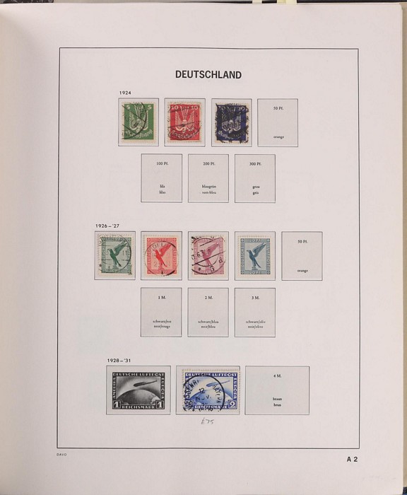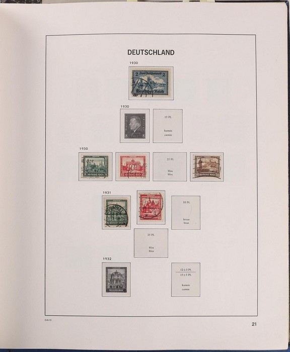335 imageGermany: 1872-1990 collection in 4 albums inc 1872 Shields selection mostly Used inc Large Shield 1/3g, 2½g, 1899 Reichspost 3Mk, 1920s Weimar Republic issues inc Welfare sets, 1927 ILO 8pf, 15pf, 1928 President set (ex 20pf), 1930 Exhibition 8pf, 15pf, 50pf, 1934 Colonisers set, 1928 2Mk Zeppelin, 1934 Airs to 3Mk, 1937 Birthday M/Sheet U, Officials selection. Also West Germany, Berlin,album of covers inc 1955 Car Show Commem covers with West Germany/Berlin combination. Mostly F-VF. SG cat £3700 = A$7400. Some variable condition, plus some ETB cards 1975-80. (Few 1000) (Image1) (Image2) (Image3) (Image4) (Image5) (Image6) (Image7) (Image8) (Image9) (Image10) (Image11) (Image12) (Image13)
