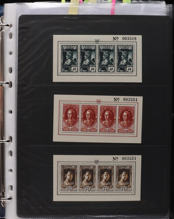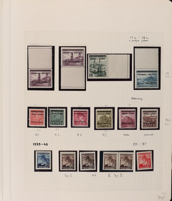 341 imageGerman Occup - Bohemia & Moravia: 1939-45 Collection MNH comp inc 1939 opt set to 10Kc (Mi cat €130) exp Gilbert, plus 4 diff opt varieties expertised (€470), also top values to 10K3 with blank tabs (4, €230), plus various gutter prs, blank & printed tabs, Officials, Dues etc. VF fresh MNH. Mi cat €1170+. Beautiful specialised collection. (370+ inc in all the tabs, gutters etc). (Image1) (Image2) (Image3) (Image4) (Image5) (Image6) (Image7) (Image8) (Image9)