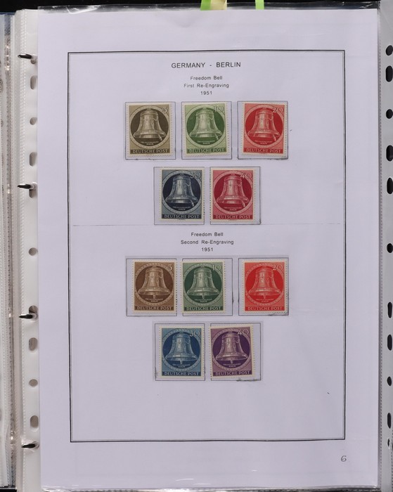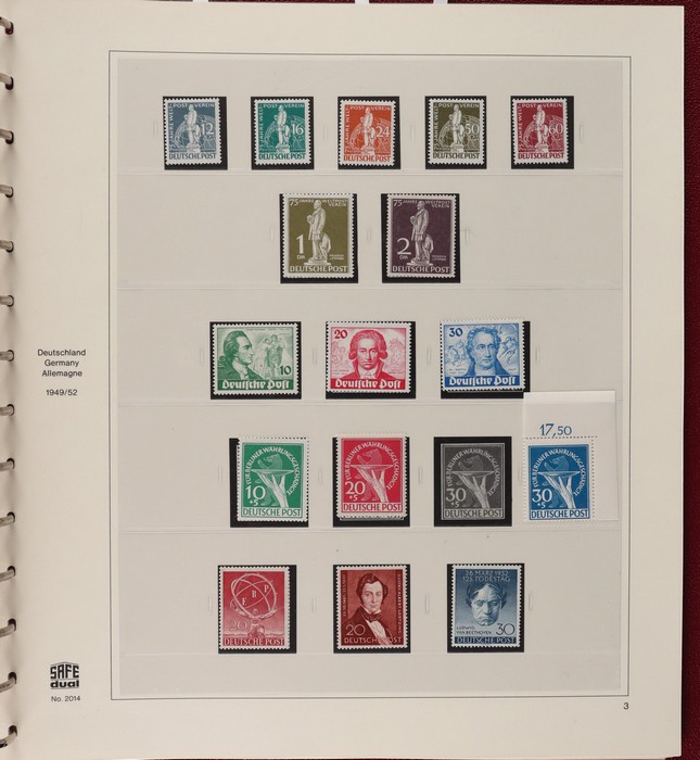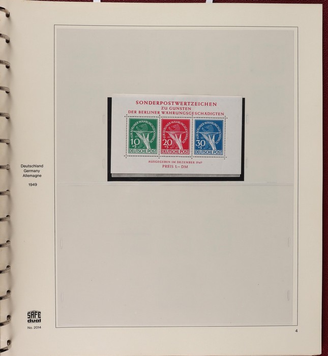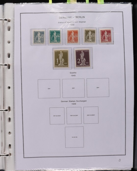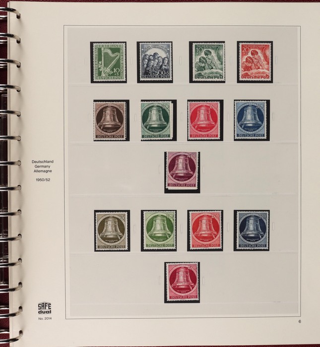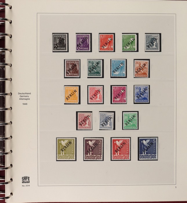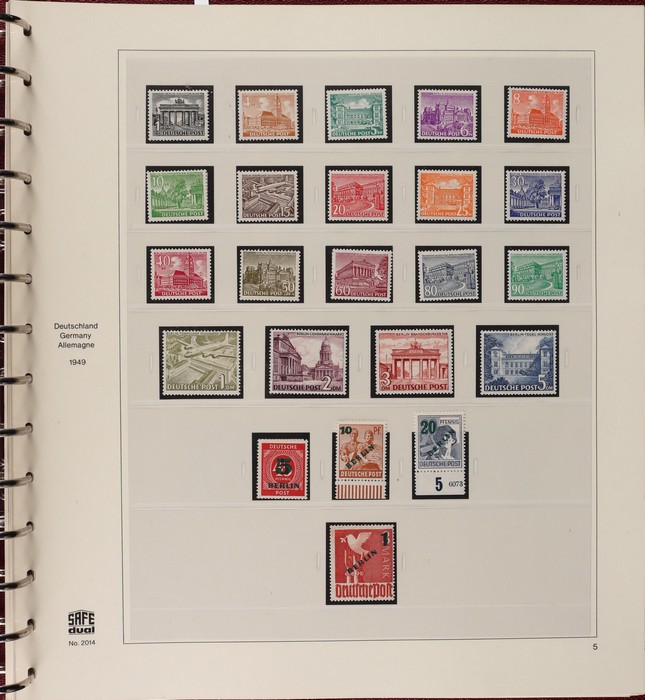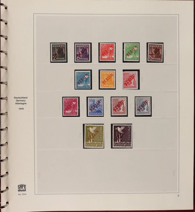 343 imageGermany - Berlin: Collection 1948-59 in Safe hingeless album MNH inc 1948 in black & 1949 in red opt sets (no certificates), 1949 UPU set, 1949 Goethe set, 1949 Berlin Relief set & M/Sheet, 1949-54 Buildings set, 1949 Surch set, 1951 Bell set at left, at right & at centre etc MNH. VF fresh. SG cat £7500 = A$15,400+. (190, 1 M/S) (Image1) (Image2) (Image3) (Image4) (Image5) (Image6) (Image7)