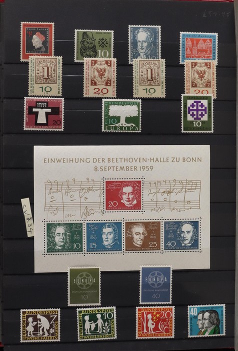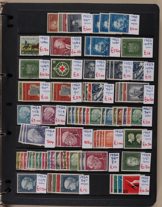 342 imageGermany - West: Collection 1948-59 on safe hingeless pgs MNH & comprehensive. 1949-50 sets comp, 1951-52 Posthorn to 80pf, 1951 St Mary's, 1951 Exhibition, 1951 Rontgen, 1951, 52 & other Relief sets, 1954-60 Pres Heuss set MNH, plus later issues. Largely VF fresh cat £5000+ = A$10,000+. (215, 1 M/S) (Image1) (Image2) (Image3) (Image4) (Image5) (Image6)