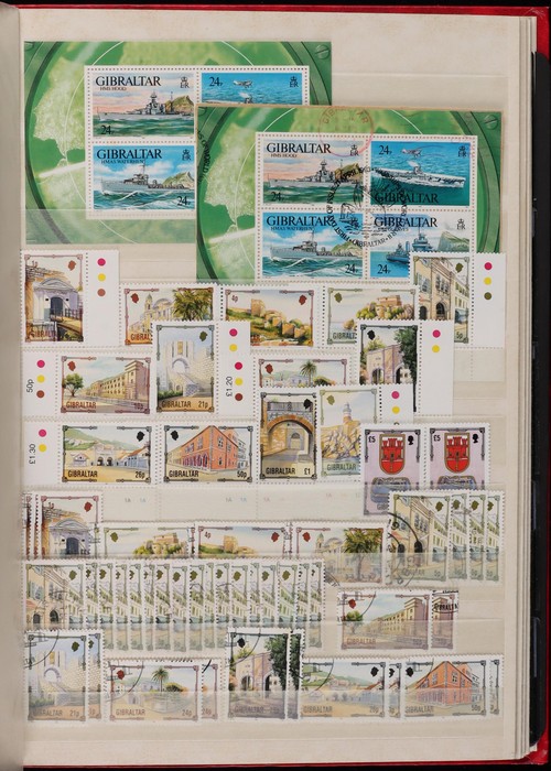 346 imageGibraltar 1886-1990s collection/accumulation in 48 pg Lighthouse s/book inc 1889 QV to 1p, 1903 KEVII to 1/- & 1904 to 2/-, 1912 KGV to 4/-, 1921-27 to 2/6, 1931 Rock set, 1938-51 KGVI various shades & perfs to 2/- inc 3d blue perf 14 (SG cat £140). 1967 QEII to £1, 1993 QEII to £5, some M/sheets, some sheets inc 1969 Christmas & various Military Uniforms (8). Some duplication particularly in earlies to 1970s. Most of the cat value is in pre 1960s. Estimate 5%-10% gum tones/no gum. Earlies mainly G-VFU, 1970s - MLH, MNH. SG est cat £2500+ = A$5000+. (1200+, 18+ M/sheets) (Image1) (Image2) (Image3) (Image4) (Image5) (Image6) (Image7) (Image8) (Image9) (Image10) (Image11) (Image12)