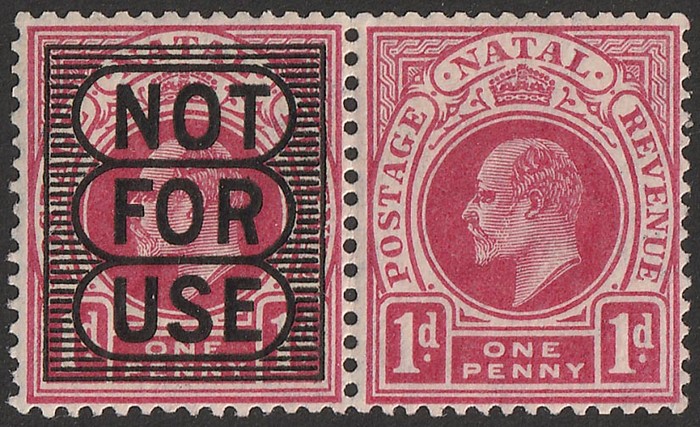 rose-carmine horiz pr, left stamp opt 'NOT FOR USE' from booklet. VF fresh MLH/MNH. SG 147a cat £475 for pane so east £300 for such pair. Quite rare. (P)