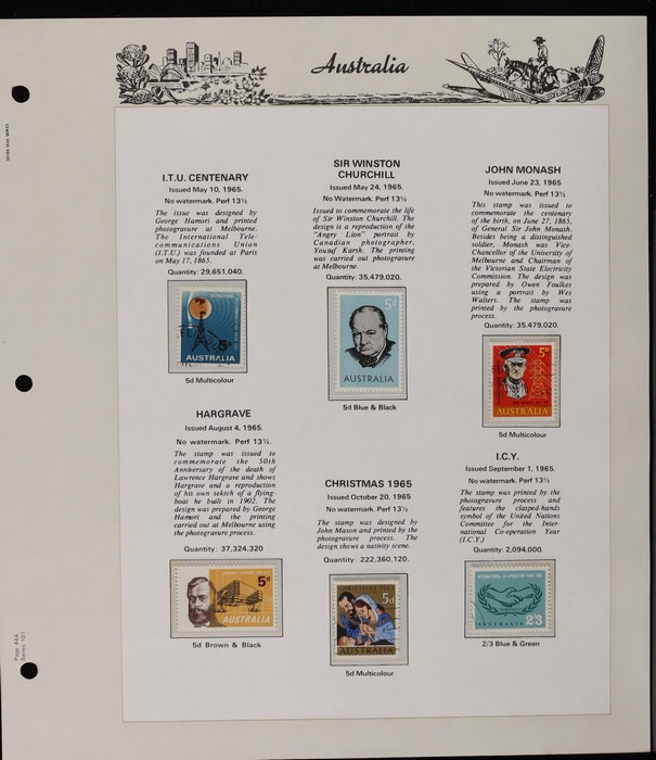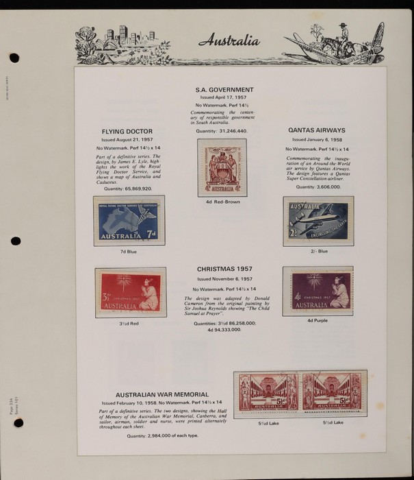 3698 imageKGV Pic & Commem collection 1914-37 F-VFU in Seven Seas hingeless pgs with 1914 Kookaburra 6d Engraved, 1931 Kingsford 2d, 3d opt OS & all other OS opts inc 1932 Lyrebird 1/-, 1934 Vic Cent set to 1/- both perfs & Macarthur set of 4 to 9d. 1935 ANZAC & KGV SJ sets. 1936 SA cent & 1937 NSW Sesqui set to 9d. All F-VFU (some appear CTO). Retail $550. (49). (Image1) (Image2) (Image3) (Image4) (Image5) (Image6) (Image7)