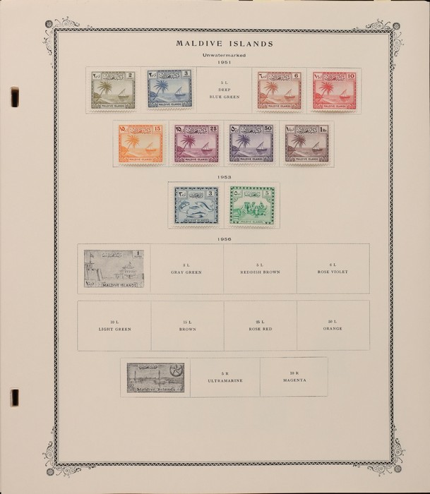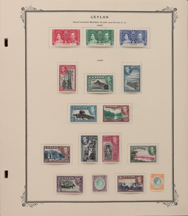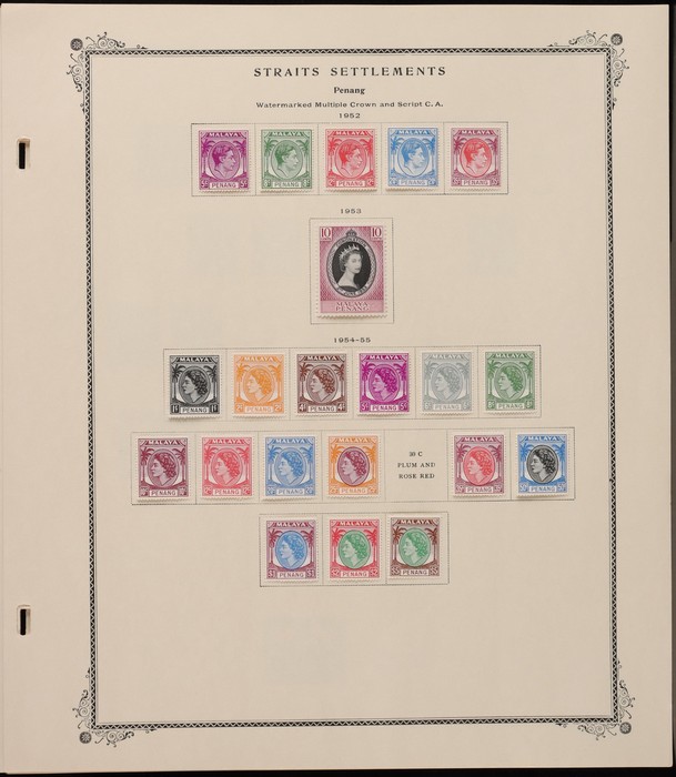 3714 imageBritish Asia: 1882-1953 collection on Scott pgs. Ceylon from 1882 inc 1935 Silver Jubilee set. 1935 KGV Pic set to 1R. 1938 KGVI Pic set to 10R. 1954 Pic Def set to 10R. Maldives 1951 Dhow Pic vals to 10R. Hong Kong from 1882 QV inc 1935 Silver Jubilee set. 1938 KGVI 1c-$10. 1941 Centenary set. 1948 Silver Wedding set. 1954 QEII set to $10. Straits settlements from 1882. Malay States inc FMS from 1901, Penang 1954-55 QEII to $5. Most F-VF M/U, majority (70%+) M. SG cat £2399+ = A$4800+. (460). (P) (Image1) (Image2) (Image3) (Image4) (Image5) (Image6) (Image7) (Image8) (Image9) (Image10) (Image11) (Image12) (Image13)