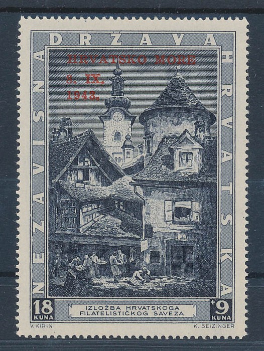 Sibenik opt Monastery 18+9K with engravers secret mark 'small s' on window. VF fresh MNH. SG 90(var), Mi 117I cat €100. (Image1)