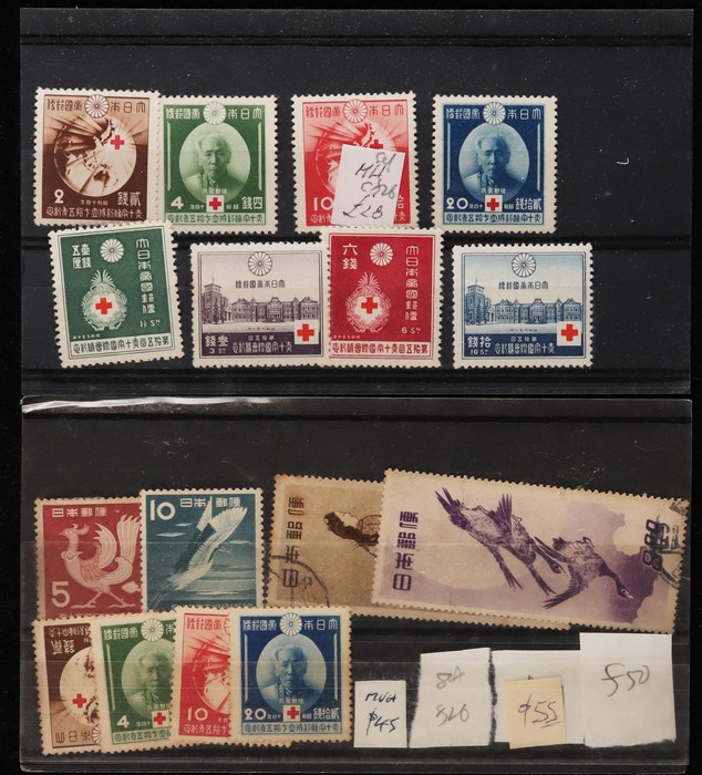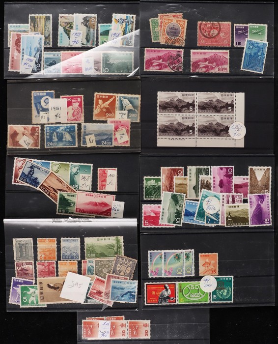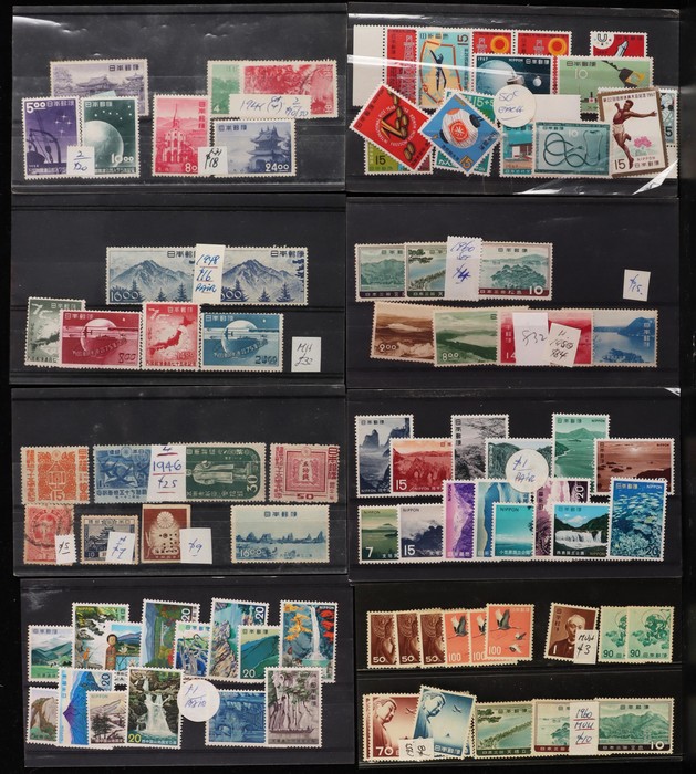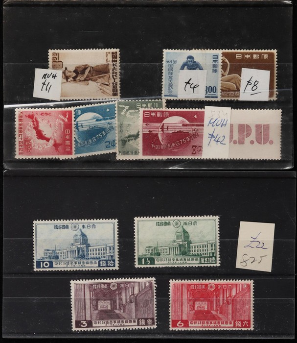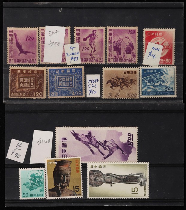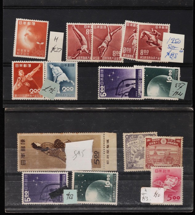 396 imageJapan: 1876-1960s dealer's stock on stockcards. Better items noted inc 1939 Red Cross set 2s-20s. 1948 Philatelic Week 5y. 149 Postal Week 8y. 1919 Peace set 1½s-10s. 1952 National Park set. 1952 Athletic 8y set (SG cat £120). 1936 National Park set. 1947 Athletic set. 1936 New Imperial Diet set. Most F-VF M/MNH, sl tropicalisation, some U. SG cat £1000+ = A$2000. (410) (Image1) (Image2) (Image3) (Image4) (Image5) (Image6) (Image7) (Image8) (Image9) (Image10) (Image11)