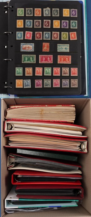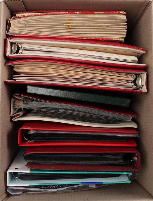401 imageLarge carton with British Commonwealth accumulation of collections with NZ inc 1862 QV Chalon 1d orange UN (retail $300), 1906 Christchurch 3d bi-colour M, 1915 KGV set of 21 to 1/- M ($450), 1919 Victory set, 1938 KGVI to 3/-, 1954 QEII Officials to 3/- & high Defs to 10/- blue, 1960 Pics to £2 & 1967 decimals to $2. Estimated total retail $1250. Australian States (300) inc SA 1902 QV Long Toms set to 2/6, VIC 1901 QV to 1/- CTO, & WA to 2/6. Australia 1980s-90s accumulation in 35 hagners, plus 1969-75 PO Pack accumulation (36) inc 1970 Selected Issues & 1971 Christmas. Fiji 1938 KGVI Pics to £1 Bugler. Indonesia 1996 Cuscus Joint Issue booklets (4, cat $400). South Africa 1920s-70s large accumulation in thick Chinese s/book, plus mixed FDC. MNH Pic sets in 3 albums. Nauru 1970s/80s MNH accumulation (FV $260) in 24 hagners inc assorted M/sheets (55). Def/Pic sets to $5, plus some pre-decimal inc 1916 Seahorse 5/-. Usual variable M/U/MNH condition with 8 albums in total. (Many 100s) (Image1) (Image2) (Image3) (Image4) (Image5) (Image6) (Image7) (Image8) (Image9) (Image10) (Image11) (Image12) (Image13) (Image14) (Image15) (Image16) (Image17) (Image18)