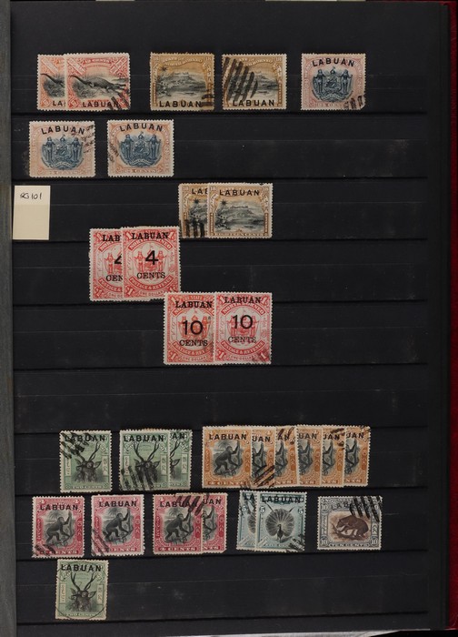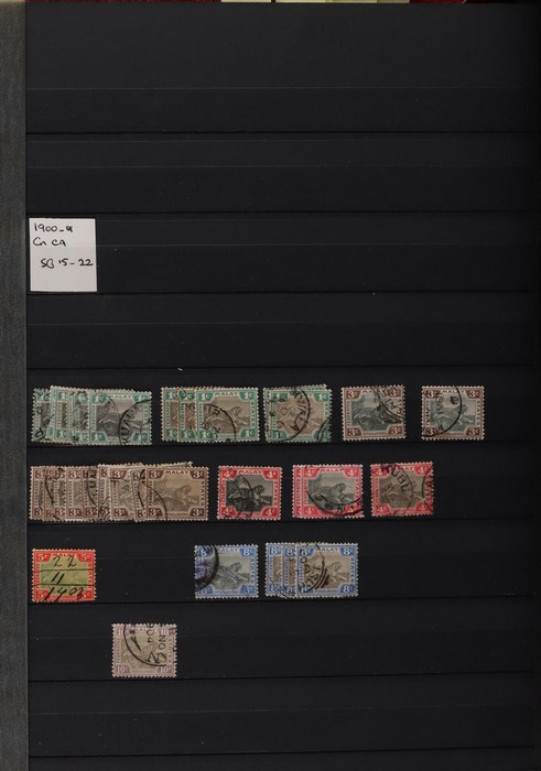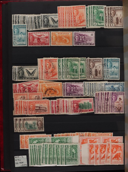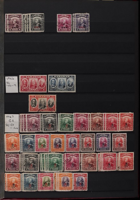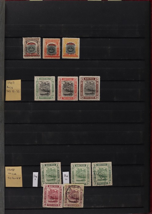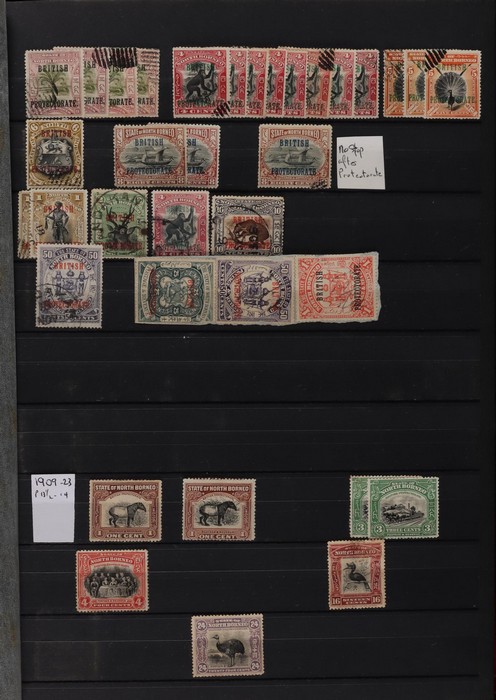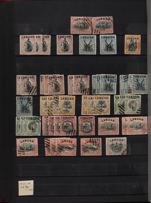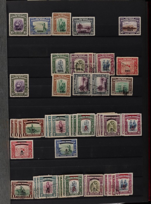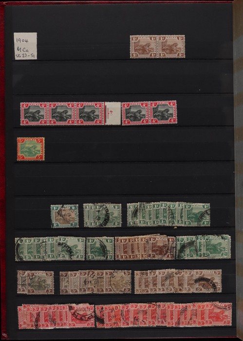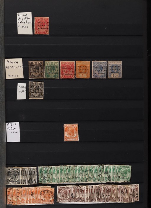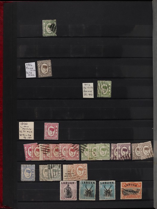 404 imageMalaya & Borneo Area 1886-1960s in 32 pg Lighthouse s/books (2) inc North Borneo 1886-1935, 1897 to 24c, 1901 opts to $1, 1904 to 24c, 1925 to 25c, 1935 to 25c, 1939 to 25c, 1950 KGVI to $2, 1954 QEII to $2, range of Sabah to $2, Labuan 1892 to 40c, 1897 to 24c, Brunei 1924 to 12c, 1947 to 50c, 1964 to $1 with glazed paper range, Straits Settlements 1867-90s, 1904 to 50c, 1921 to $1, 1937 to $2 inc unissued 8c, 1922 Malaya Borneo Exhibition few plating errors, BMA 1945 to $5 M & U, Federated Malay States, 1922 to $1, Sarawak 1875-1920s issues inc 1942 Brooke to $1 with Revenue cds, 1942 6c on 5c Sembilan in blks. Generally fresh F-VF MLH/MNH, about 50% G-VFU. SG est cat £3500+ = A$7000+. (2800+) (Image1) (Image2) (Image3) (Image4) (Image5) (Image6) (Image7) (Image8) (Image9) (Image10) (Image11) (Image12) (Image13) (Image14) (Image15) (Image16) (Image17) (Image18) (Image19) (Image20) (Image21) (Image22) (Image23) (Image24) (Image25) (Image26) (Image27) (Image28) (Image29) (Image30) (Image31) (Image32) (Image33) (Image34) (Image35) (Image36) (Image37) (Image38) (Image39) (Image40)