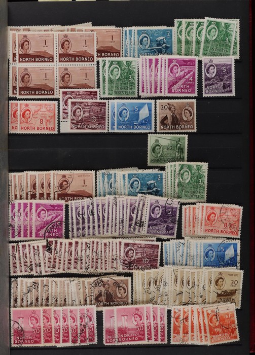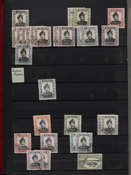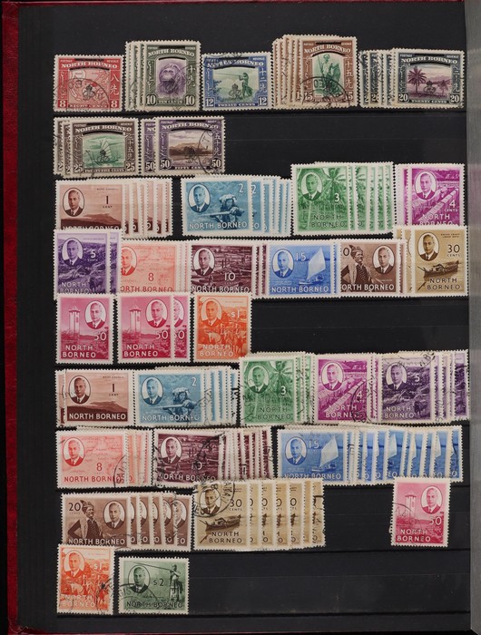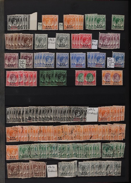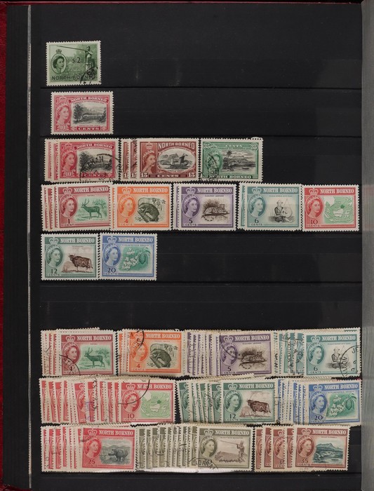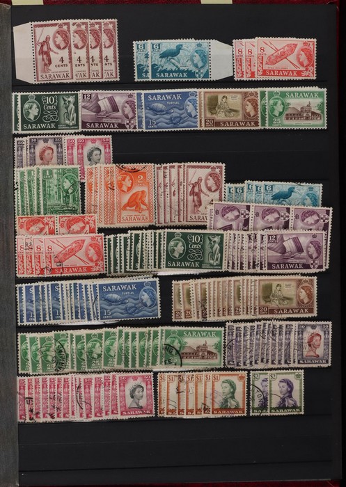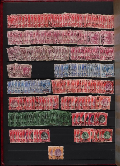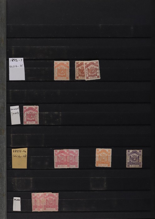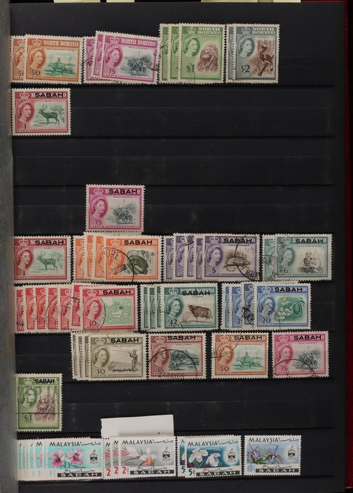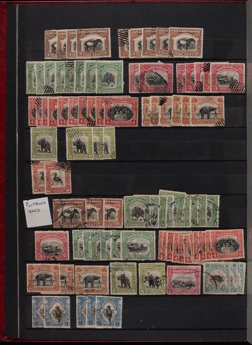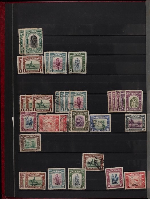 404 imageMalaya & Borneo Area 1886-1960s in 32 pg Lighthouse s/books (2) inc North Borneo 1886-1935, 1897 to 24c, 1901 opts to $1, 1904 to 24c, 1925 to 25c, 1935 to 25c, 1939 to 25c, 1950 KGVI to $2, 1954 QEII to $2, range of Sabah to $2, Labuan 1892 to 40c, 1897 to 24c, Brunei 1924 to 12c, 1947 to 50c, 1964 to $1 with glazed paper range, Straits Settlements 1867-90s, 1904 to 50c, 1921 to $1, 1937 to $2 inc unissued 8c, 1922 Malaya Borneo Exhibition few plating errors, BMA 1945 to $5 M & U, Federated Malay States, 1922 to $1, Sarawak 1875-1920s issues inc 1942 Brooke to $1 with Revenue cds, 1942 6c on 5c Sembilan in blks. Generally fresh F-VF MLH/MNH, about 50% G-VFU. SG est cat £3500+ = A$7000+. (2800+) (Image1) (Image2) (Image3) (Image4) (Image5) (Image6) (Image7) (Image8) (Image9) (Image10) (Image11) (Image12) (Image13) (Image14) (Image15) (Image16) (Image17) (Image18) (Image19) (Image20) (Image21) (Image22) (Image23) (Image24) (Image25) (Image26) (Image27) (Image28) (Image29) (Image30) (Image31) (Image32) (Image33) (Image34) (Image35) (Image36) (Image37) (Image38) (Image39) (Image40)