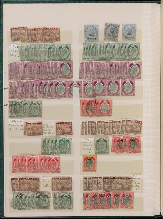 406 imageMalta: 1863-1990s in Lighthouse s/book inc 1863 ½d buff (shades), 1886 to 1/-, 1899 Harbour diff shades & wmks inc 'crown to left & reversed' (SG 31y-6), 1904 to 1/-, 1922 to 1/-, 1930 to 2/-, 1938 to 10/-, 1948 Self Govt to 10/-, then range to 1990s, several SG varieties. Fresh F-VF approx 40% MLH/MNH, 60% U. SG est cat £3000+ = A$6000. (1500 + 4 M/S) (Image1) (Image2) (Image3) (Image4) (Image5) (Image6) (Image7) (Image8) (Image9) (Image10) (Image11) (Image12) (Image13) (Image14) (Image15)
