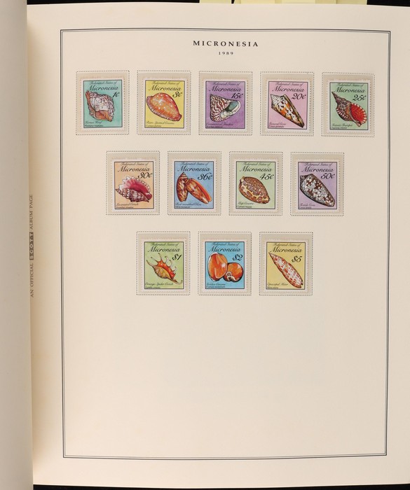 492 imageUSA Territories Micronesia 1984-2001 collection in 2 Scott Country albums with mounts with blank pages to 2009, few later issues. 1984 set to $10, 1989 Shells set to $5, 1993 Fish set to $2.90. Many set & M/S, all diff. Mainly VF fresh MNH. SG cat £1950, vendor est (detailed list) FV $500+ = A$760+. (350+, 130 M/S) (Image1) (Image2) (Image3) (Image4) (Image5) (Image6) (Image7) (Image8) (Image9) (Image10) (Image11) (Image12) (Image13) (Image14) (Image15) (Image16)